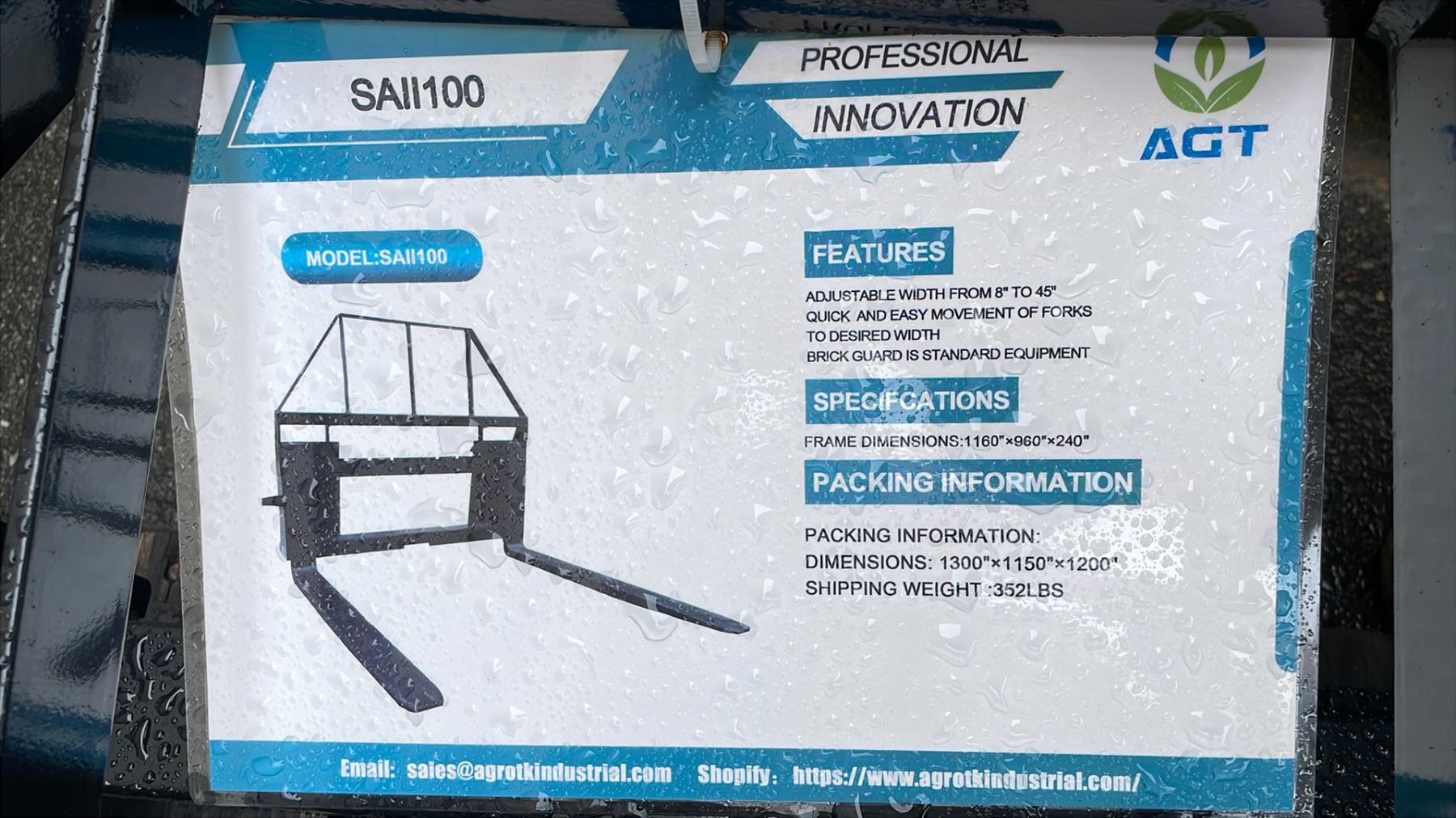AGT INDUSTRIAL SAII100 SKID STEER PALLET FORK ATTACHMENT WITH 48" FORKS