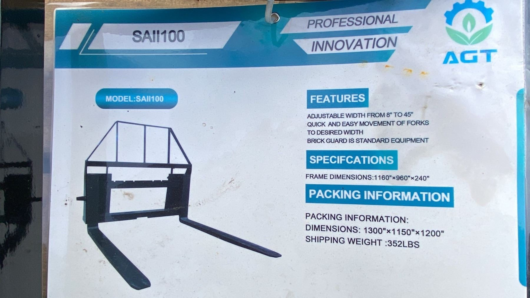 AGT INDUSTRIAL SAII100 SKID STEER PALLET FORK ATTACHMENT WITH 48" FORKS