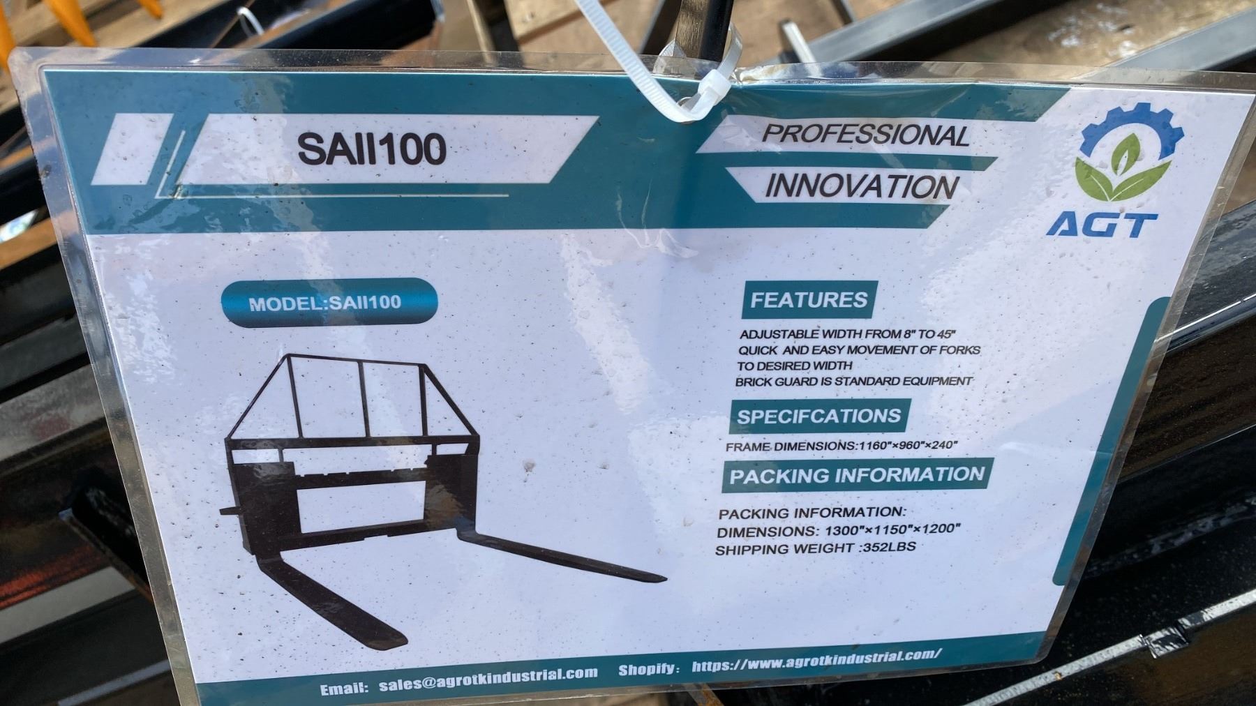AGT INDUSTRIAL SAII100 SKID STEER PALLET FORK ATTACHMENT WITH 48" FORKS