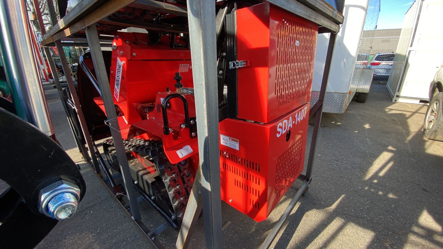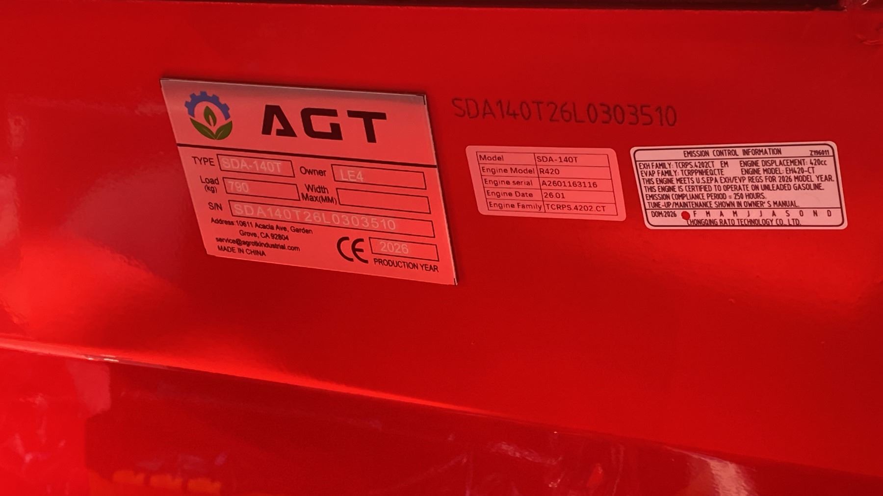 AGT INDUSTRIAL SDA-140T RED GAS POWERED PNEUMATIC TIRE RIDE ON MINI SKID STEER WITH ATTACHED 44"W BUCKET, RAIN COVER, MINI TOOL KIT & KEYS *MEETS CANADIAN EMISSIONS CONTROL REGULATIONS*