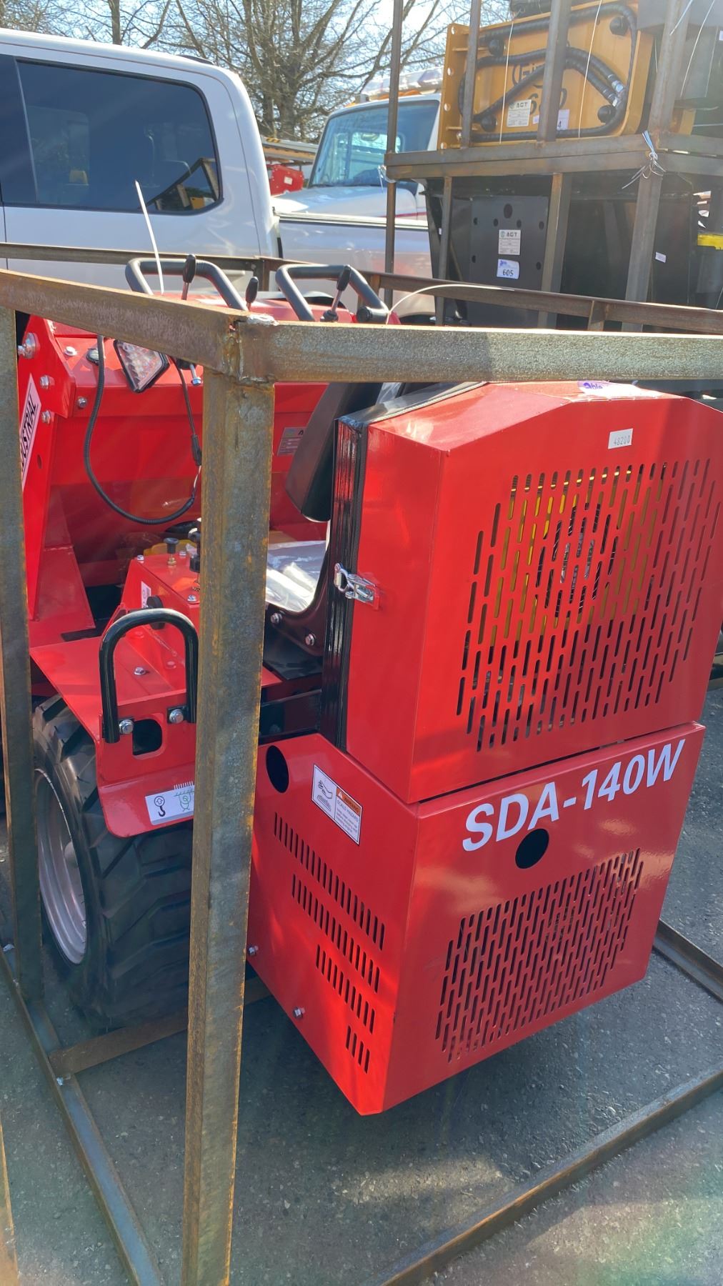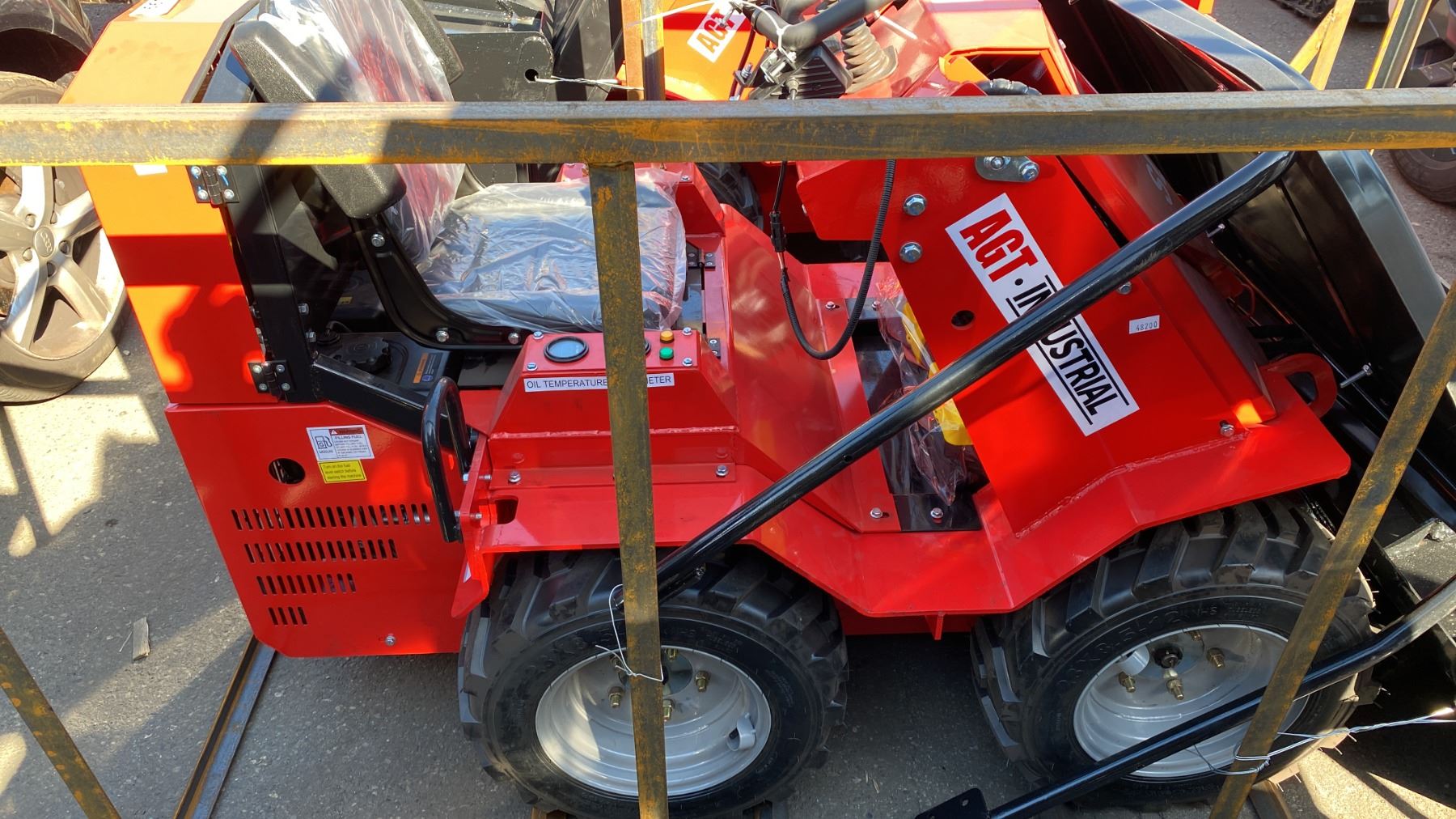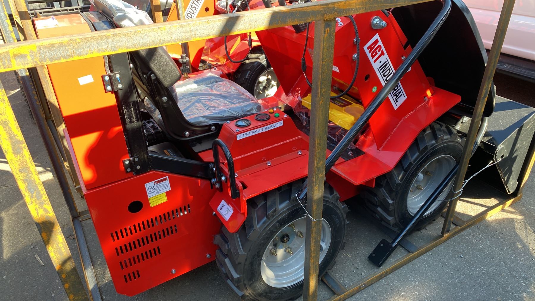 AGT INDUSTRIAL SDA-140W RED GAS POWERED PNEUMATIC TIRE RIDE ON MINI SKID STEER WITH ATTACHED 44"W BUCKET, RAIN COVER, MINI TOOL KIT & KEYS *MEETS CANADIAN EMISSIONS CONTROL REGULATIONS*
