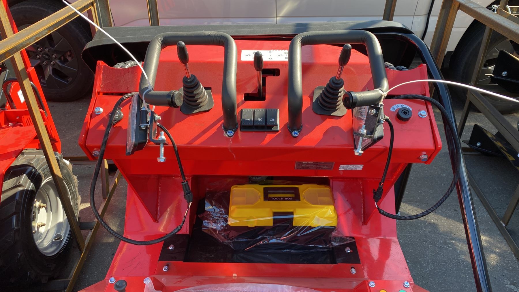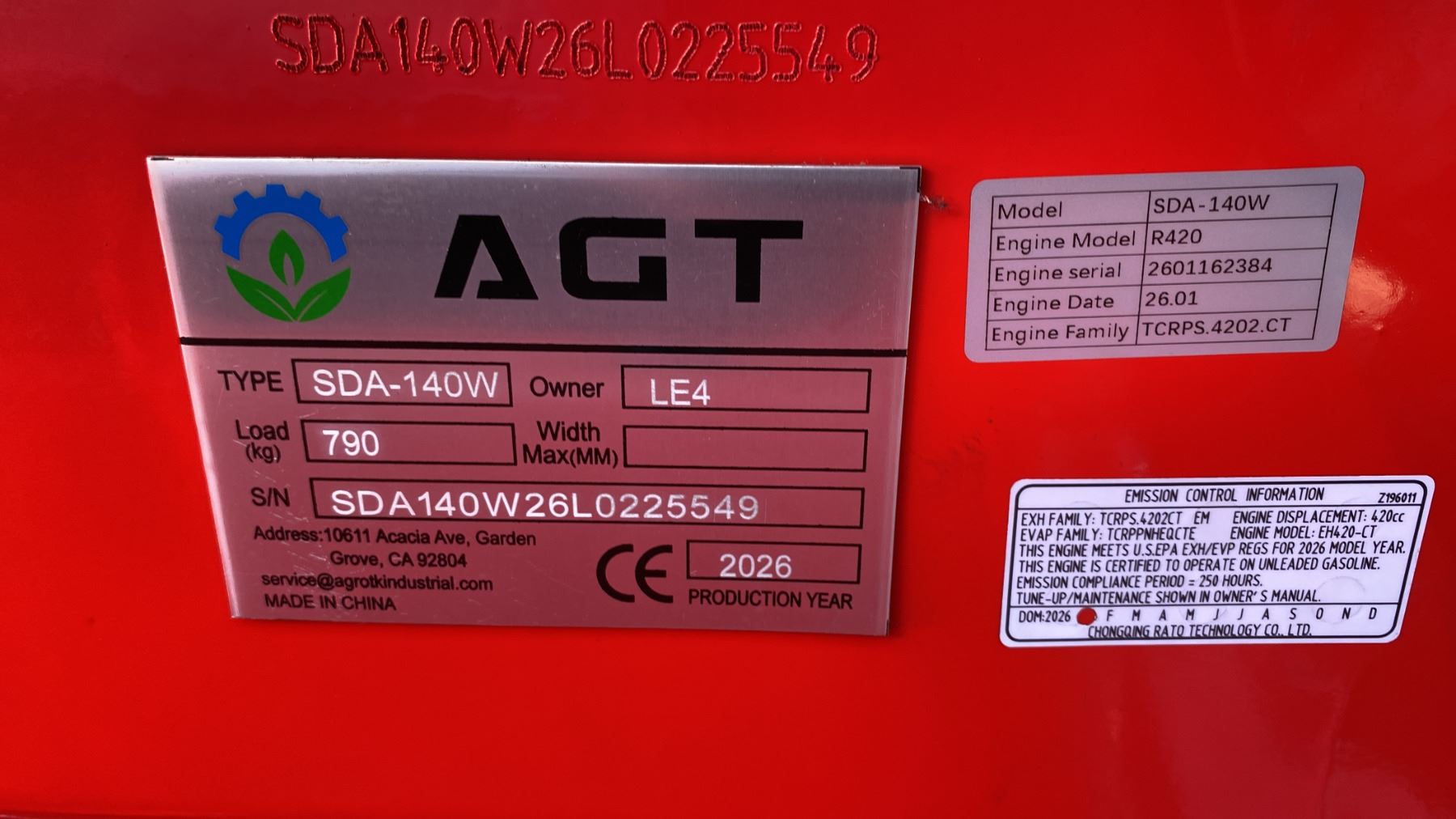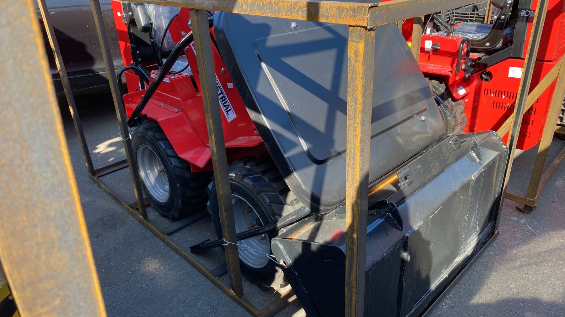 AGT INDUSTRIAL SDA-140W RED GAS POWERED PNEUMATIC TIRE RIDE ON MINI SKID STEER WITH ATTACHED 44"W BUCKET, RAIN COVER, MINI TOOL KIT & KEYS *MEETS CANADIAN EMISSIONS CONTROL REGULATIONS*