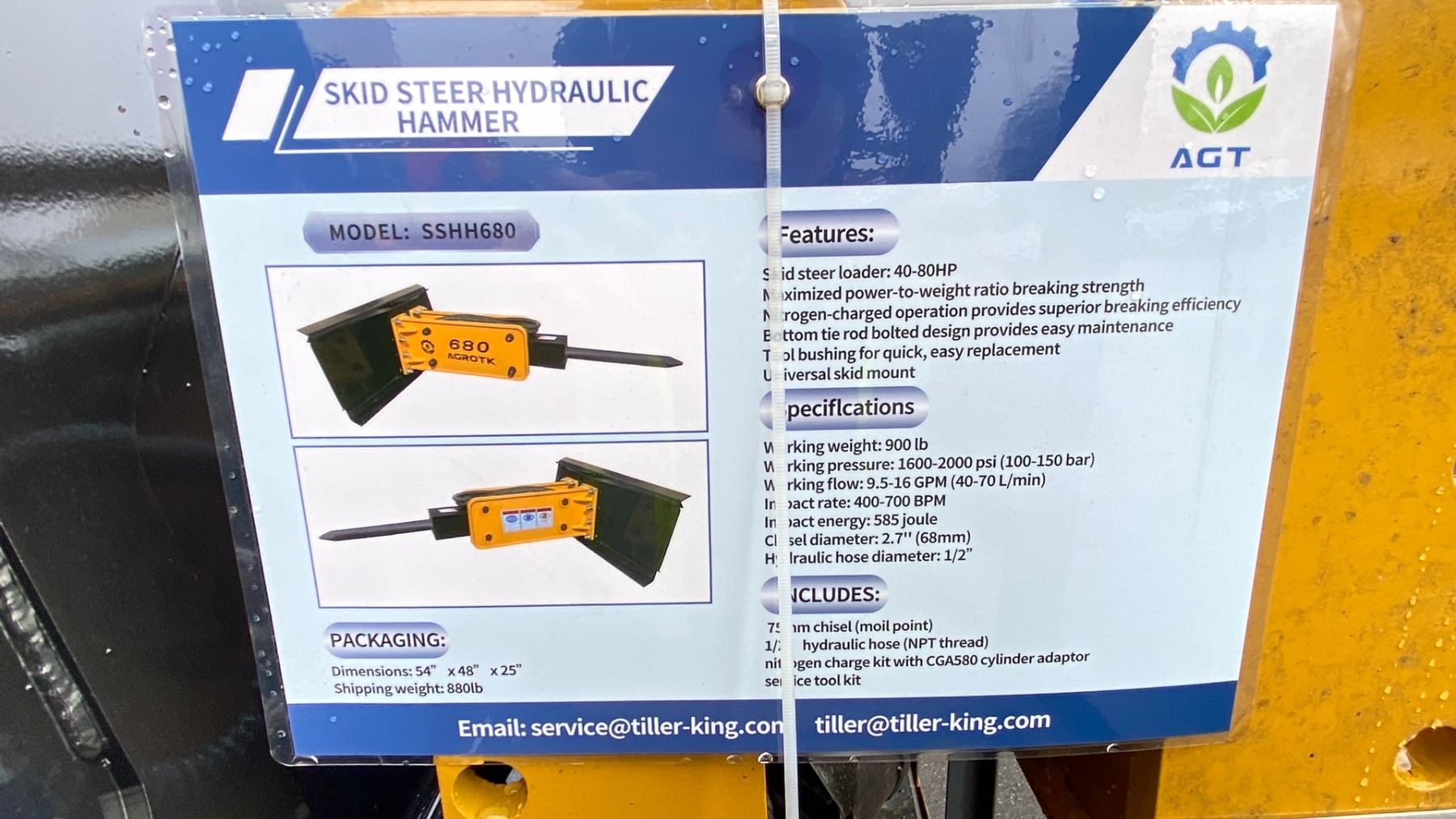 AGT INDUSTRIAL SSHH680 SKID STEER HYDRAULIC HAMMER (48"W X 54"D X 24"H)