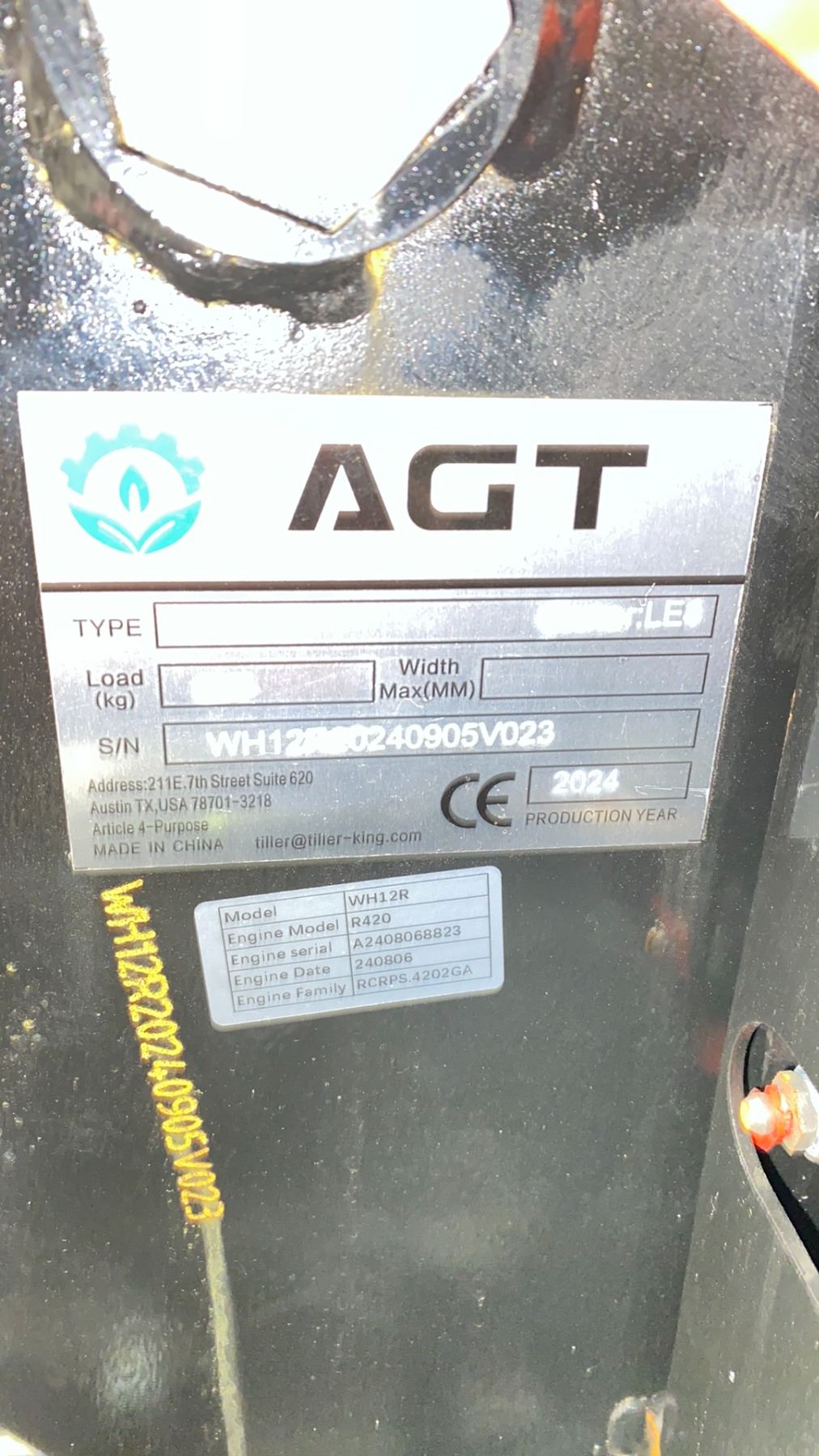 AGT INDUSTRIAL WH12R 2024 ORANGE 13.5 HP GAS POWERED RUBBER TRACK MINI EXCAVATOR WITH ATTACHED DIGGING BUCKET, GRADER BLADE, MINI TOOL KIT & KEYS *MEETS CANADIAN EMISSIONS CONTROL REGULATIONS*