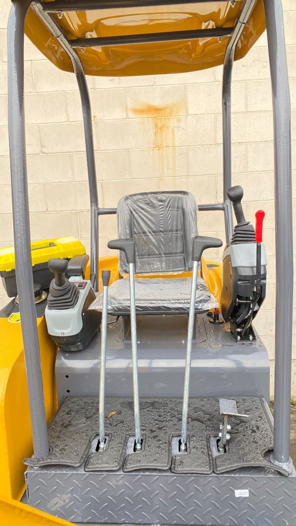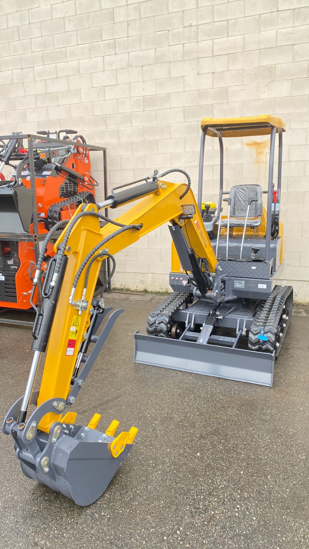 AGT INDUSTRIAL YELLOW MX50R GAS POWERED RUBBER TRACK MINI EXCAVATOR WITH ATTACHED DIGGING BUCKET GRADER BLADE, MINI TOOL KIT & KEYS *MEETS CANADIAN EMISSIONS CONTROL REGULATIONS*