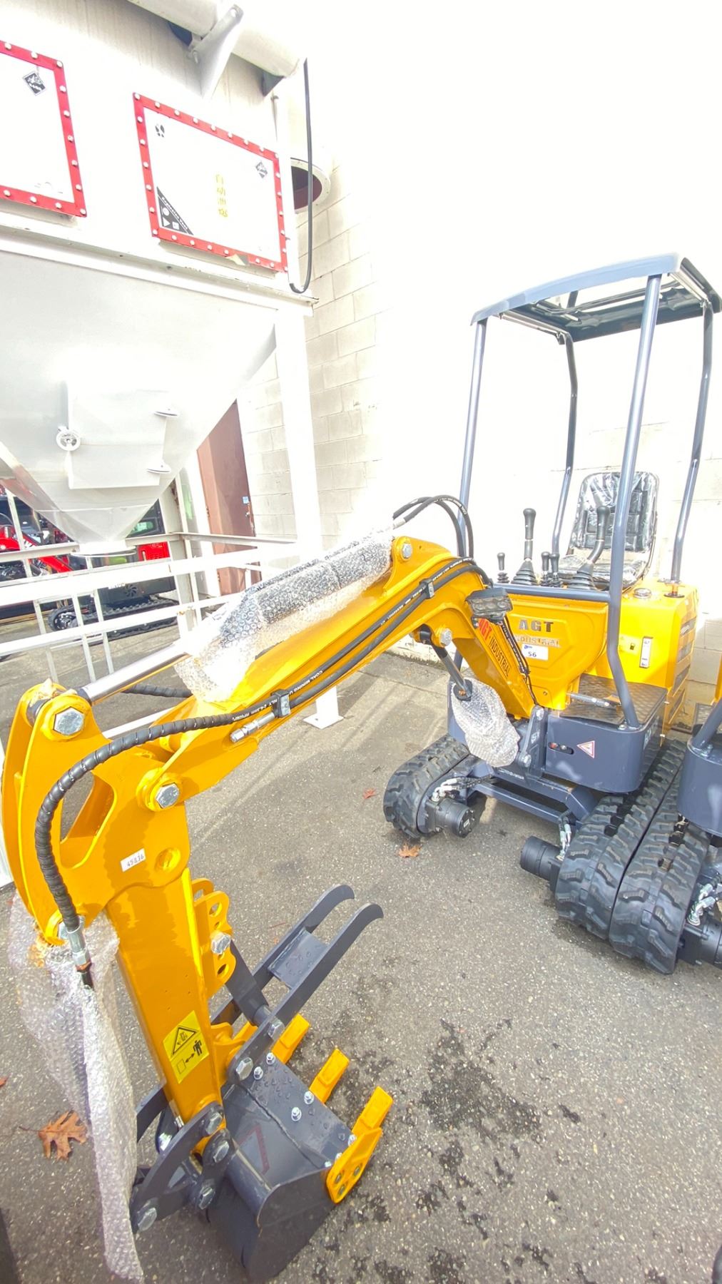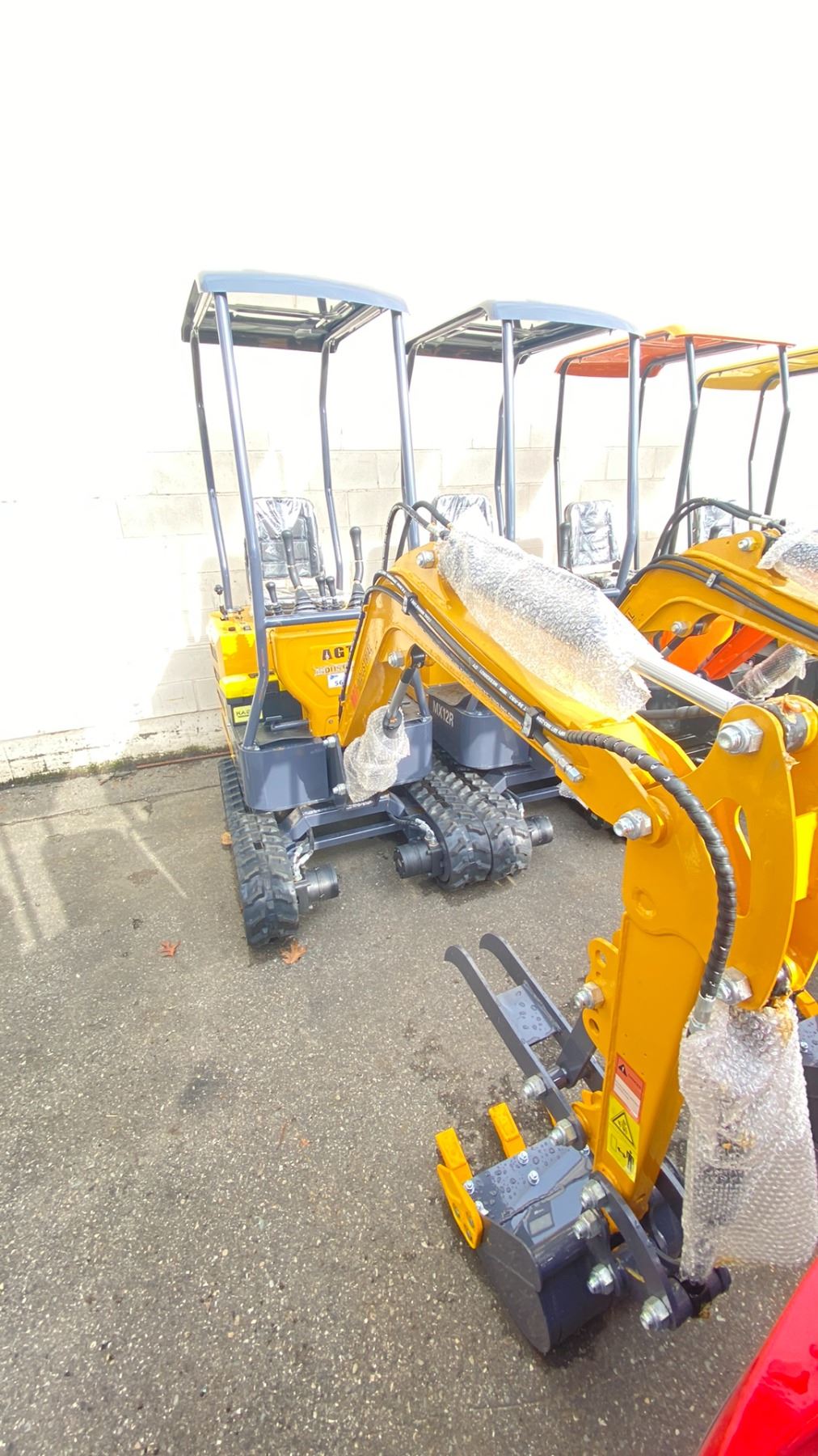 AGT MX12R 2024 YELLOW 13.5 HP GAS POWERED ENCLOSED RUBBER TRACK MINI EXCAVATOR WITH ATTACHED 0.025M CUBED CAPACITY DIGGING BUCKET, GRADER BLADE & MINI TOOL KIT, HAS KEYS *MEETS CANADIAN EMISSIONS CONTROL REGULATIONS*