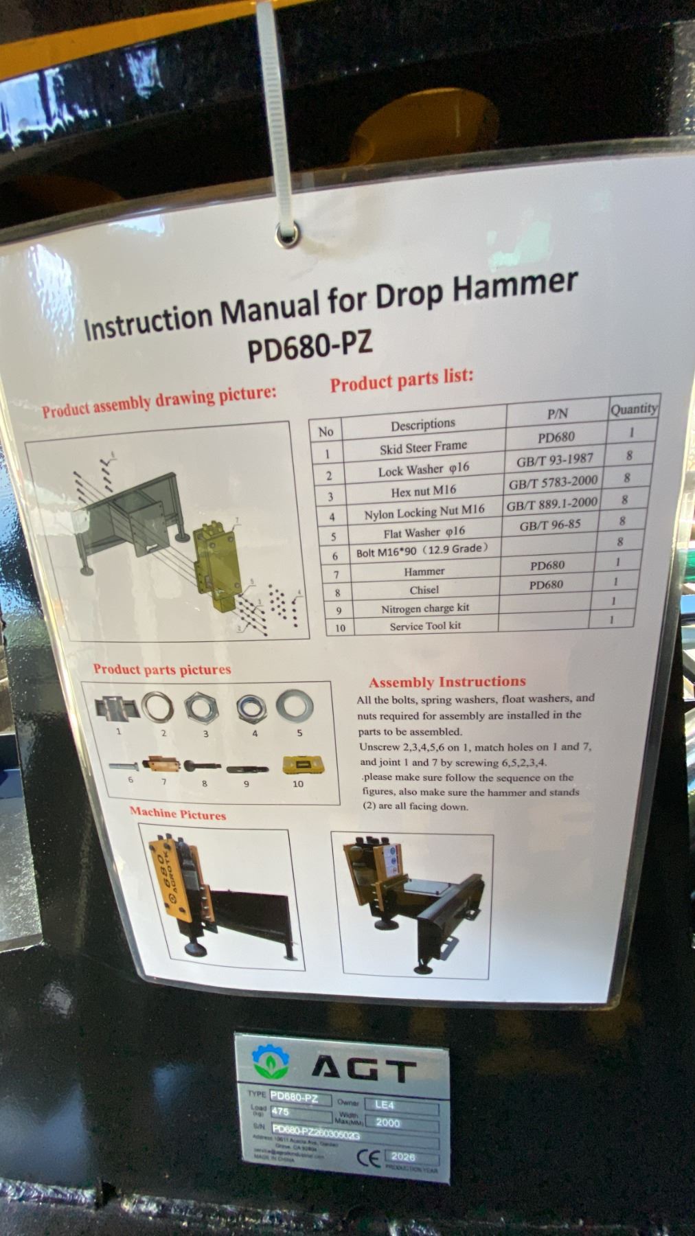 AGT PD680-PZ HYDRAULIC SKID STEER INDUSTRIAL DROP HAMMER ATTACHMENT