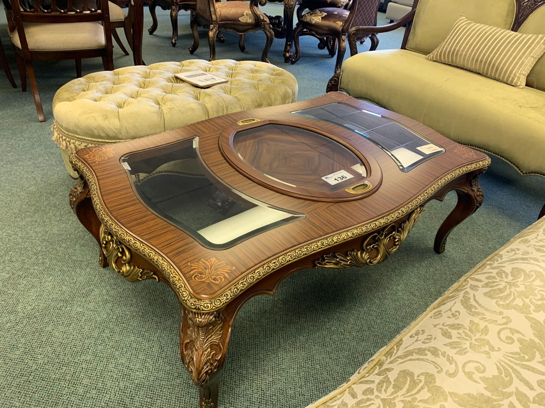 AICO IMPERIAL COURT CHESTNUT & GLASS STORAGE COCKTAIL TABLE