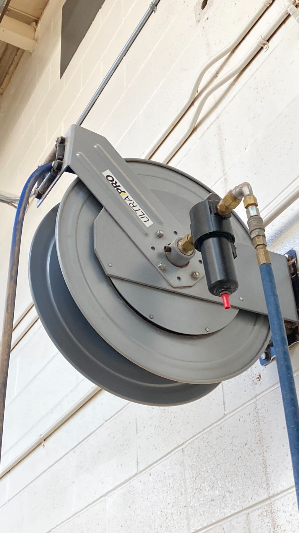 AIR HOSE REEL-MUST BE REMOVED FROM WALL LOCATED IN BLENDER ROOM *REQUIRES A LADDER & TOOLS FOR REMOVAL*