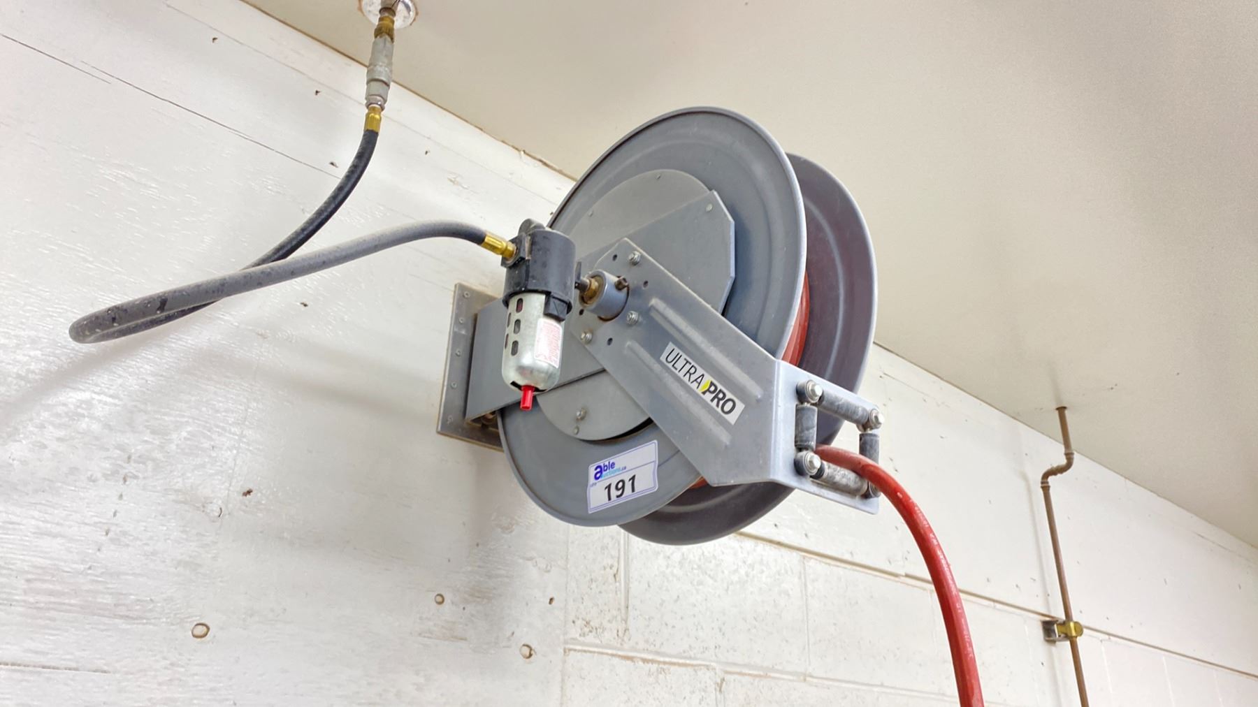 AIR HOSE REEL-MUST BE REMOVED FROM WALL LOCATED IN SACHET ROOM 2 *REQUIRES A LADDER & TOOLS FOR REMOVAL*