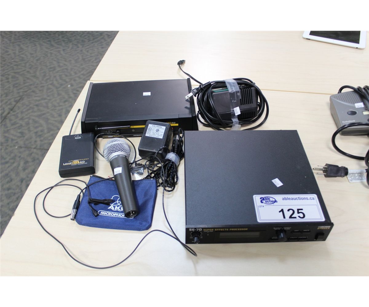 AKG UHF PT40 WIRELESS MICROPHONE W/ SR40 RECEIVER - SHURE SM58 MICROPHONE - AND BOSS SE-70 EFFECTS PROCESSOR