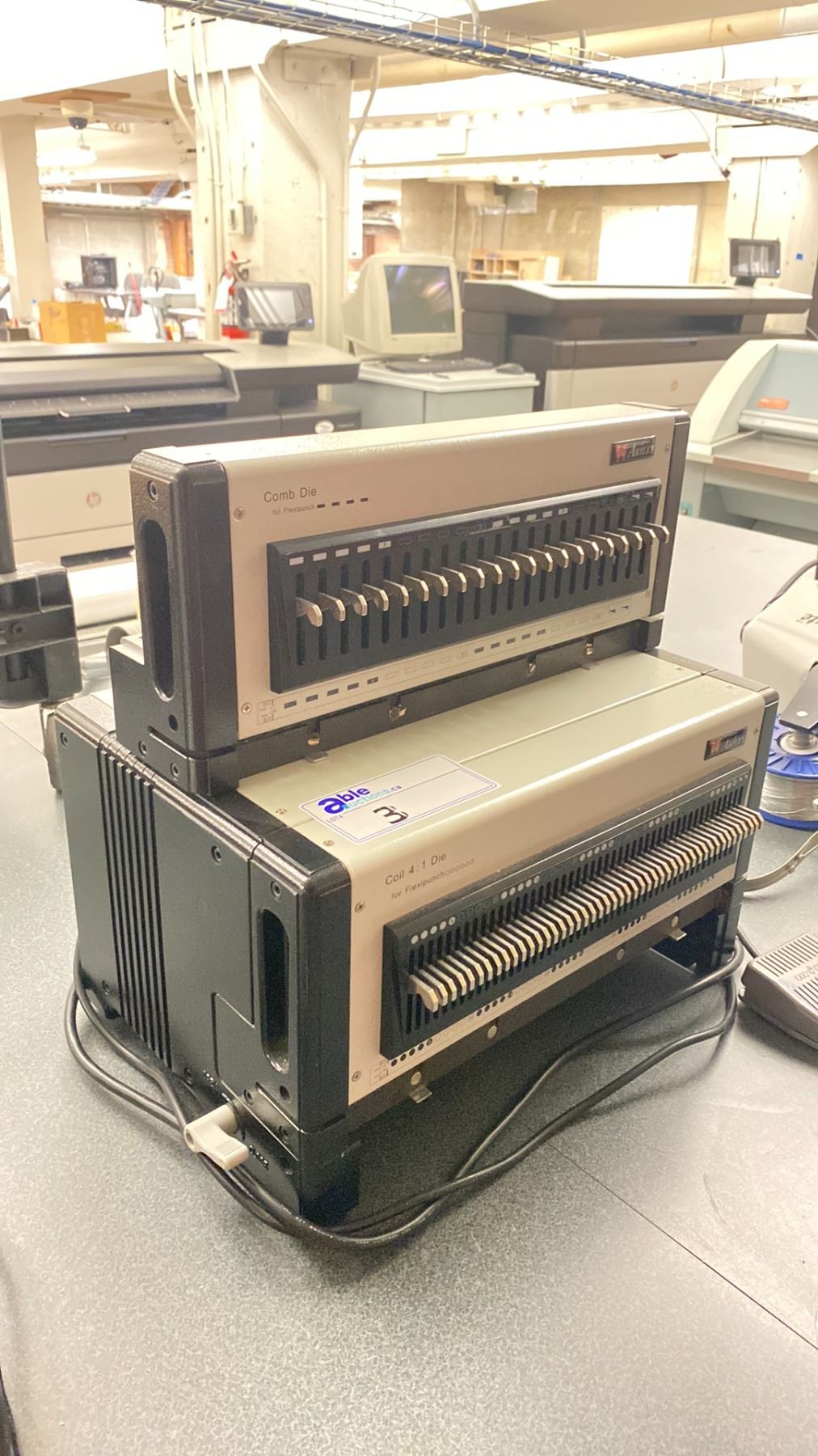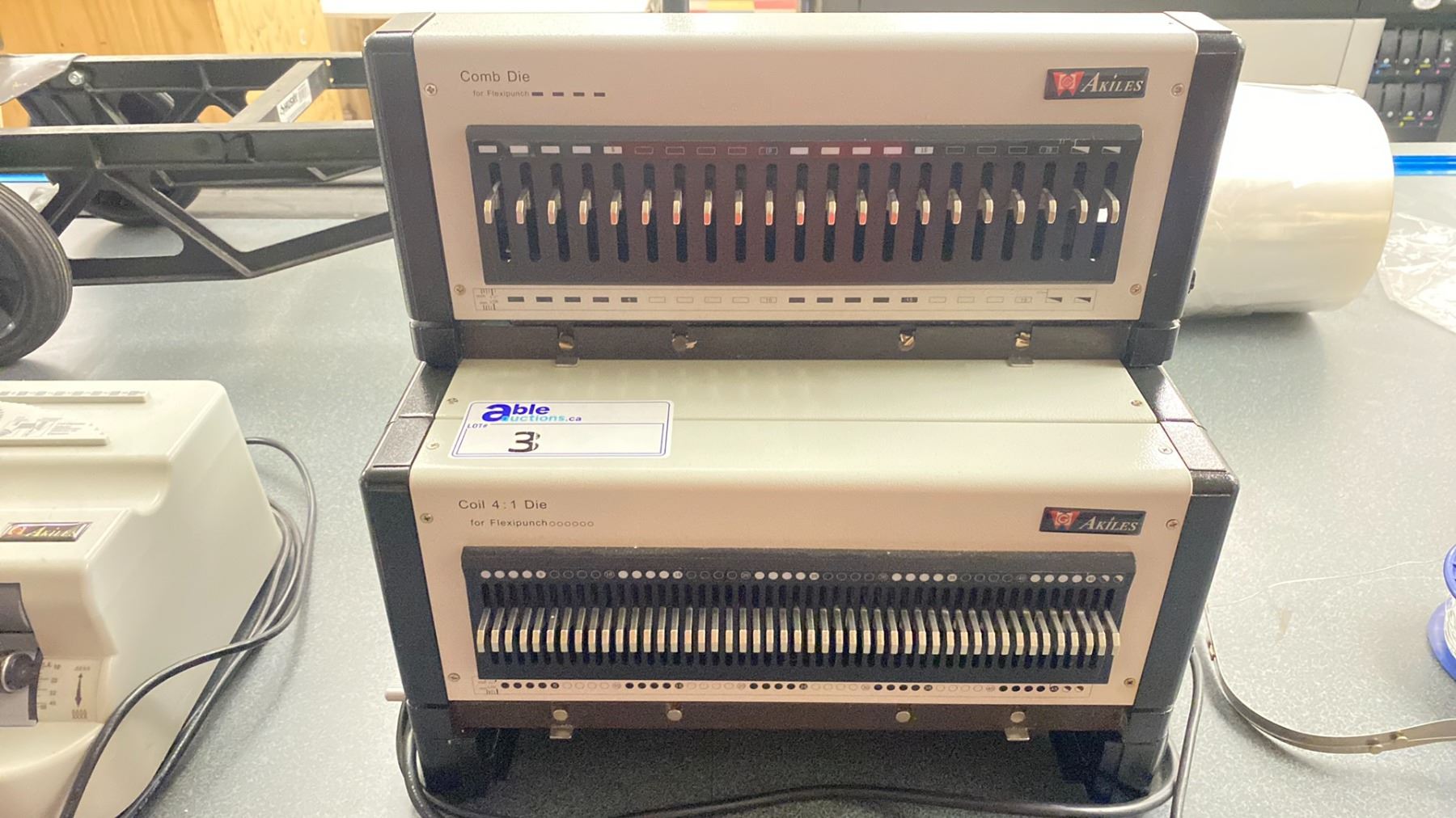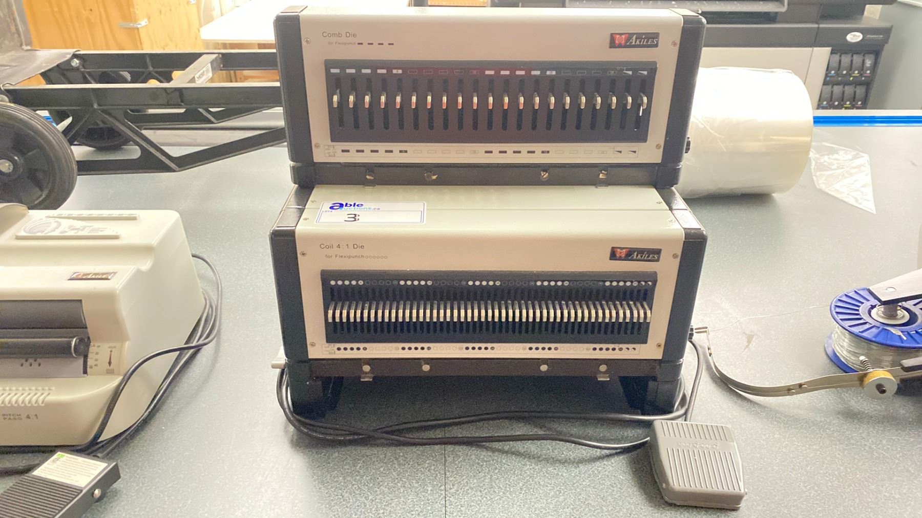 AKILES FLEXIPUNCH-E COMMERCIAL ELECTRIC COIL 4:1 DIE TABLE TOP COIL BINDER WITH FOOT CONTROL