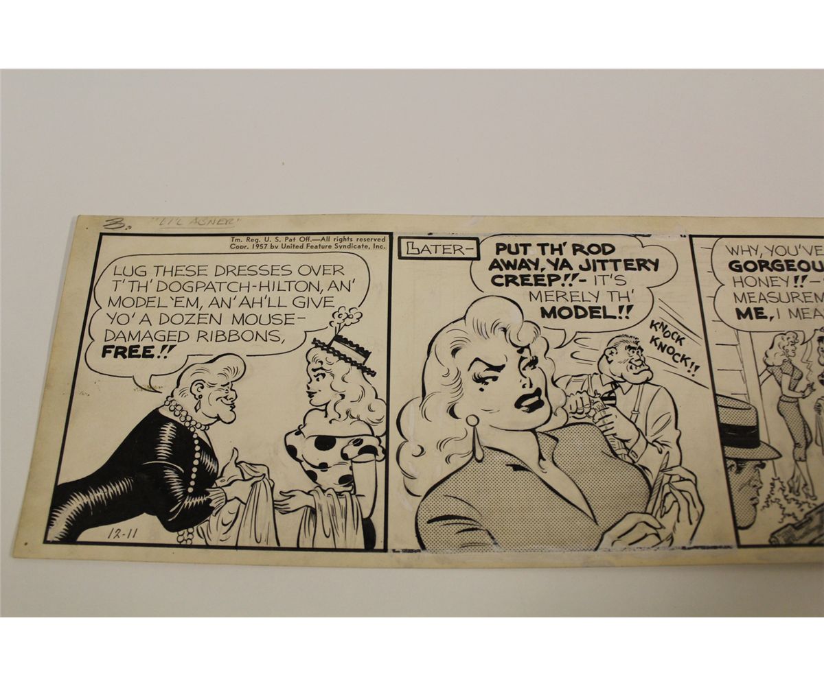 AL CAPP ORIGINAL COMIC ART- LI'L ABNER COMIC STRIP DATED 12-11 (1957) WRITING ON TOP "3. LI'L ABNER" AND "(FRAZETTA'S GHOSTING PERIOD)"