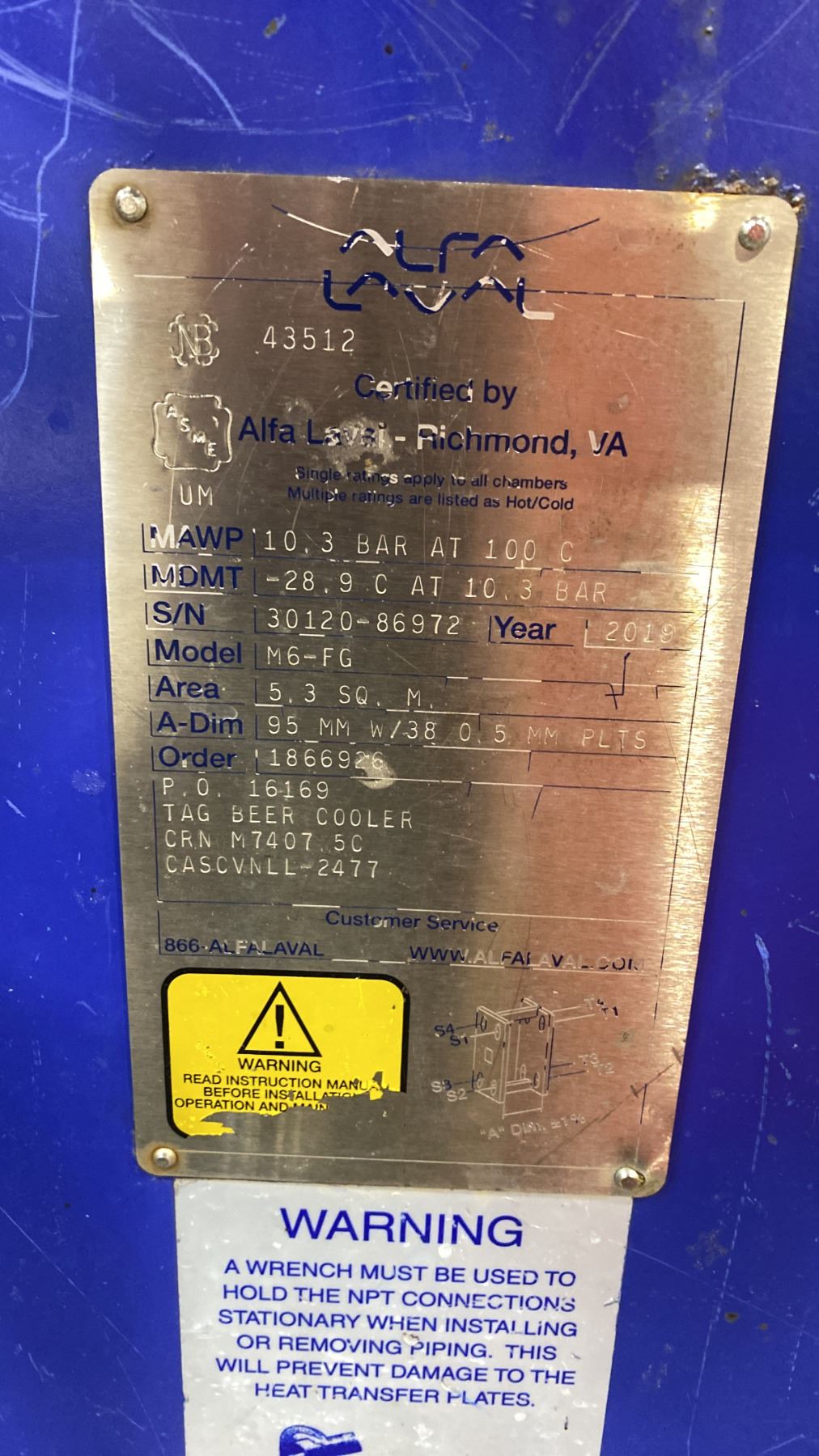 ALFA LAVAL M6-FG PLATE HEAT EXCHANGER MACHINE