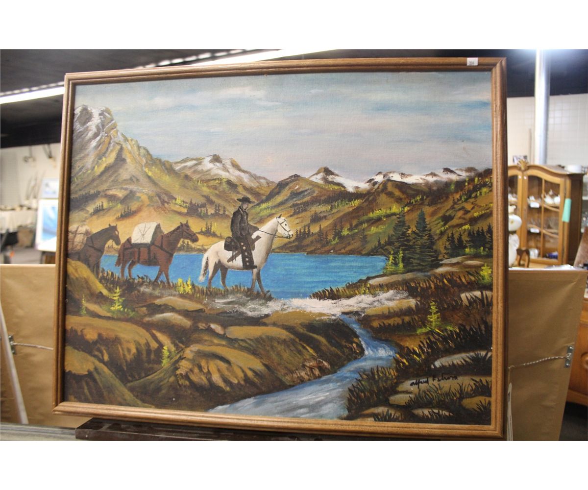 ALFRED EDSTROM "COWBOY" OIL ON BOARD, 27 1/2" W X 22" H SIGNED LOWER RIGHT ALL NET PROCEEDS FROM THE SALE OF THIS ARTWORK WILL BE DONATED TO THE SQUAMISH FOOD BANK