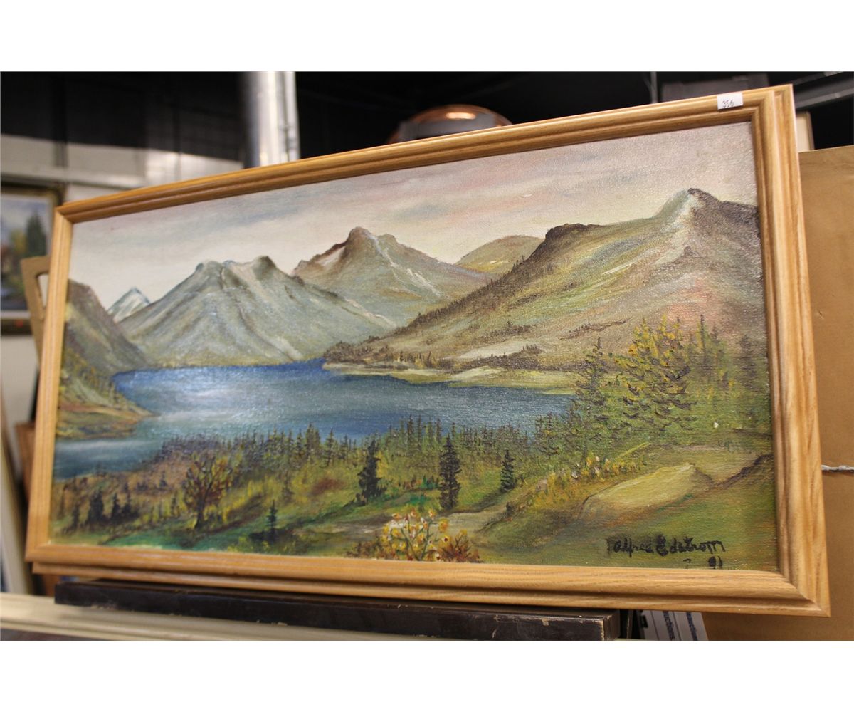 ALFRED EDSTROM "LAKESIDE" OIL ON CANVAS, 24" W X 12" H SIGNED LOWER RIGHT ALL NET PROCEEDS FROM THE SALE OF THIS ARTWORK WILL BE DONATED TO THE SQUAMISH FOOD BANK