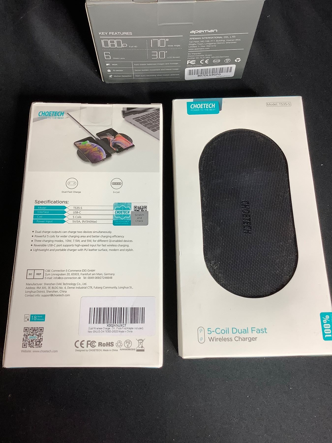 *ALL NEW* APEMAN C450 DASH CAMERA 1080P 3  LCD SCREEN AND 2 CHOETECH 5 COIL DUAL FAST WIRELESS