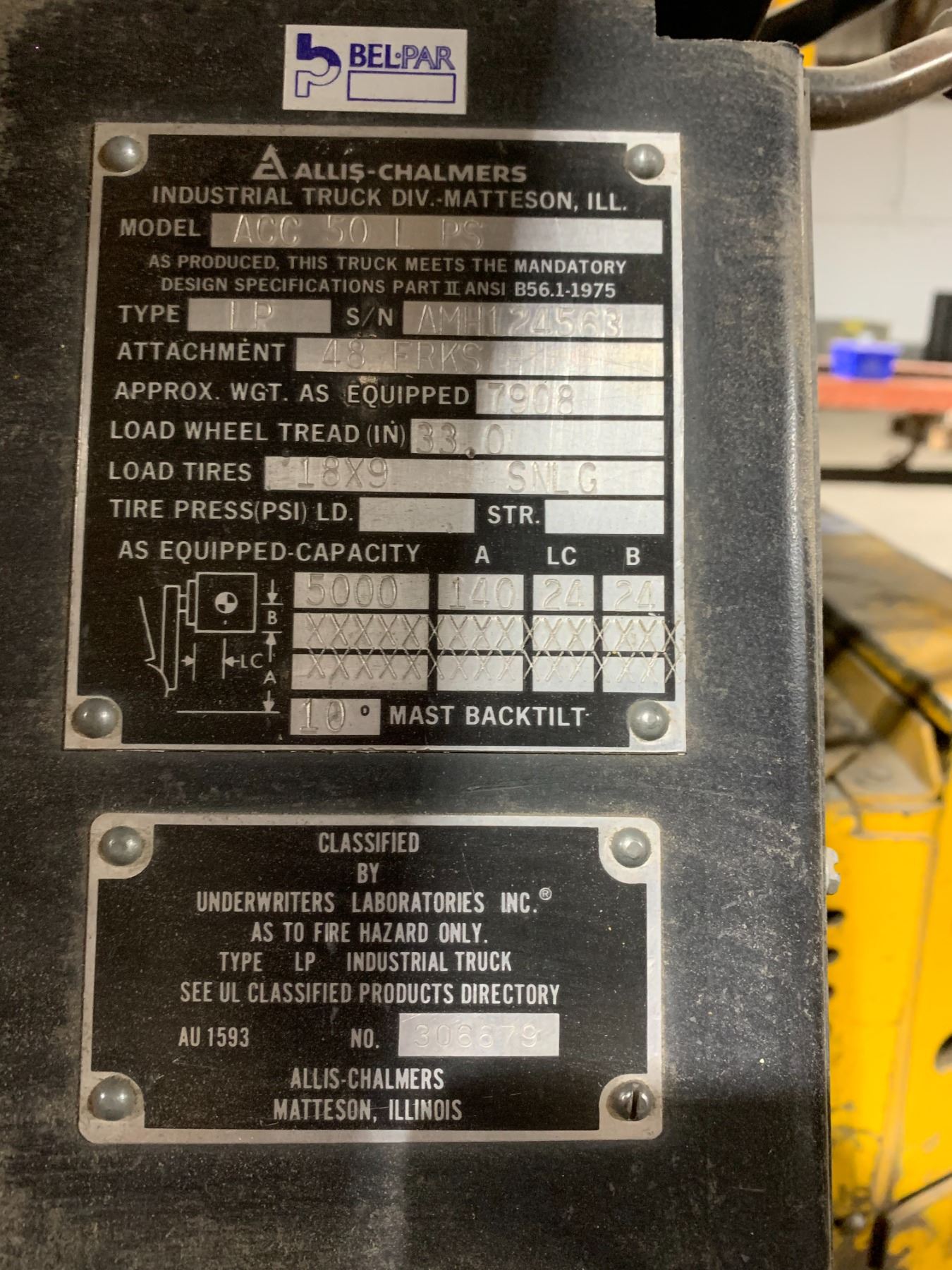 ALLIS-CHALMERS MODEL ACC50 - 5000LBS. CAPACITY FORKLIFT (HRS. N/A)