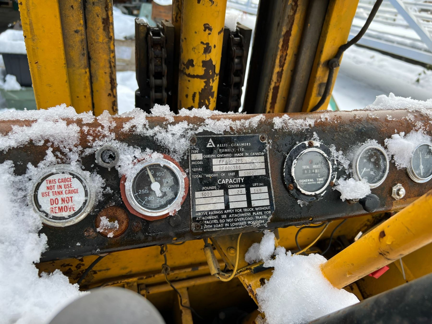 ALLIS CHALMERS MODEL FG50 2PS 5000LB CAPACITY 8938 HRS - 168" LIFT - REPORTED TO BE WORKING - PROPANE TANK EMPTY & OUT OF DATE