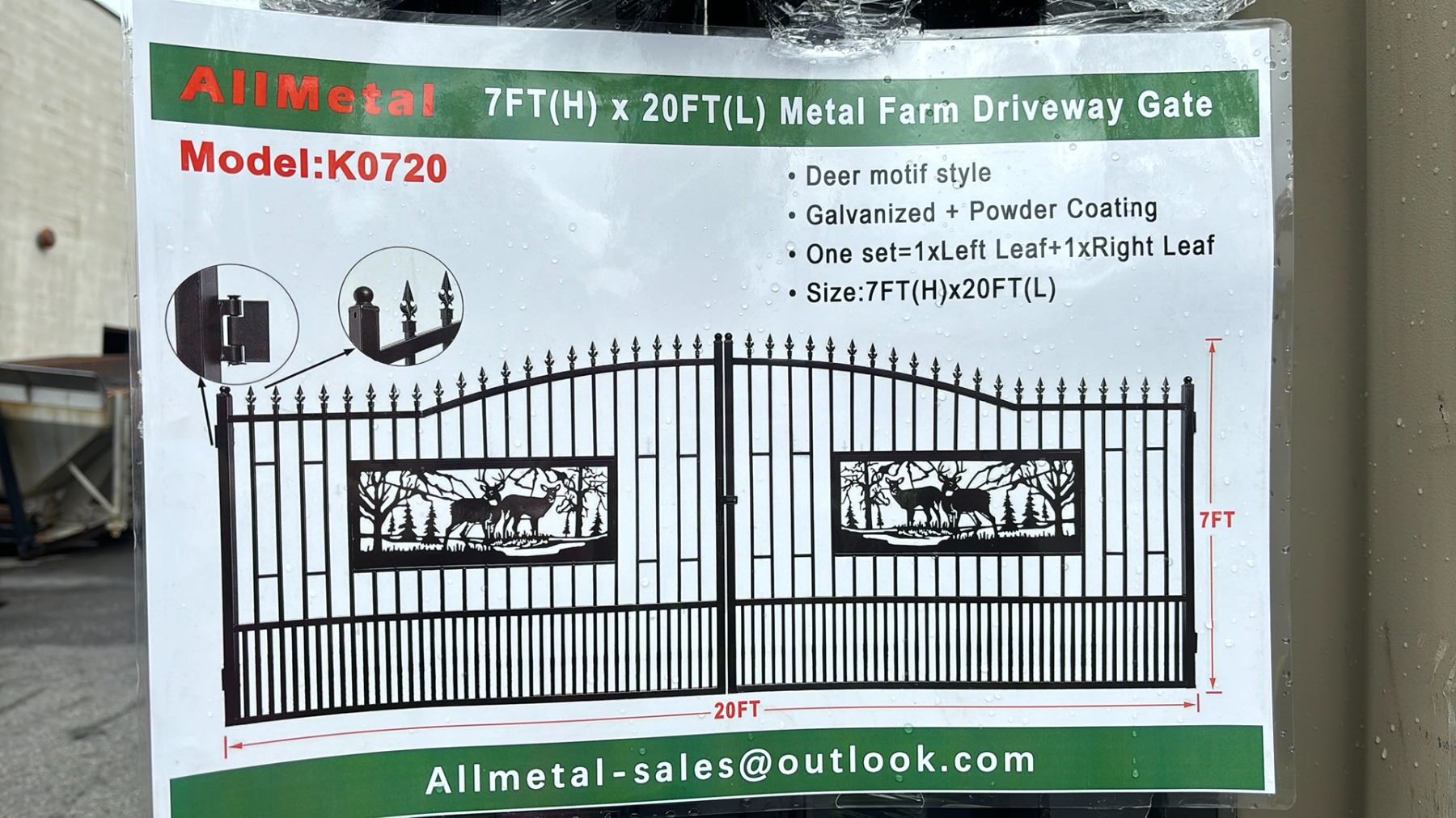 ALLMETAL K0720 DEER MOTIF STYLE METAL FARM DRIVEWAY GATE - 7'H X 20'L ** REQUIRES 2 PEOPLE FOR REMOVAL **
