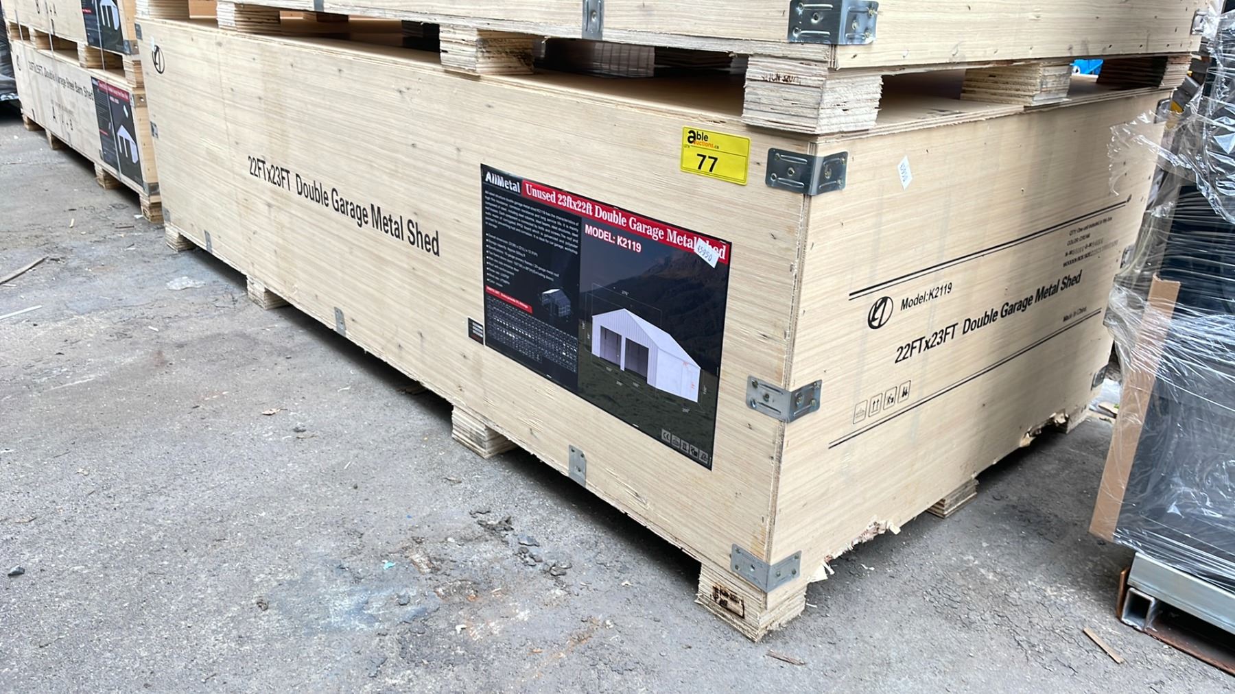 ALLMETAL K2119 UNUSED DOUBLE GARAGE METAL SHED 23W X 22'L X 12.9'H