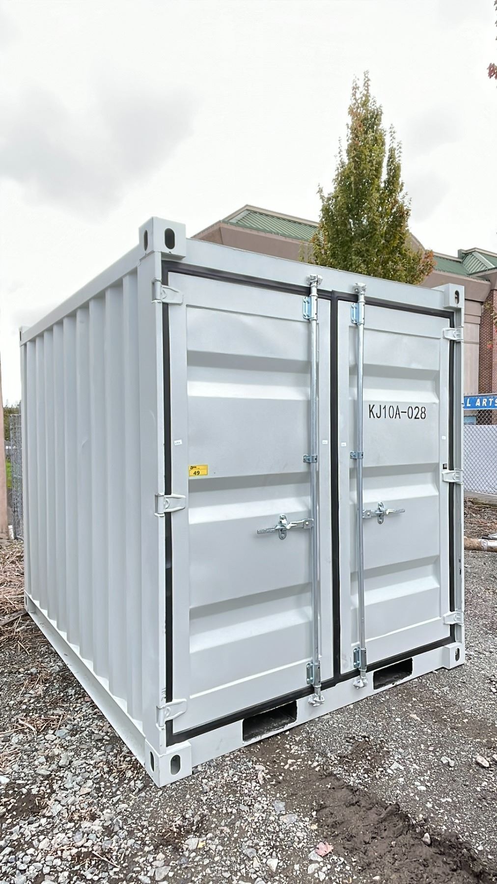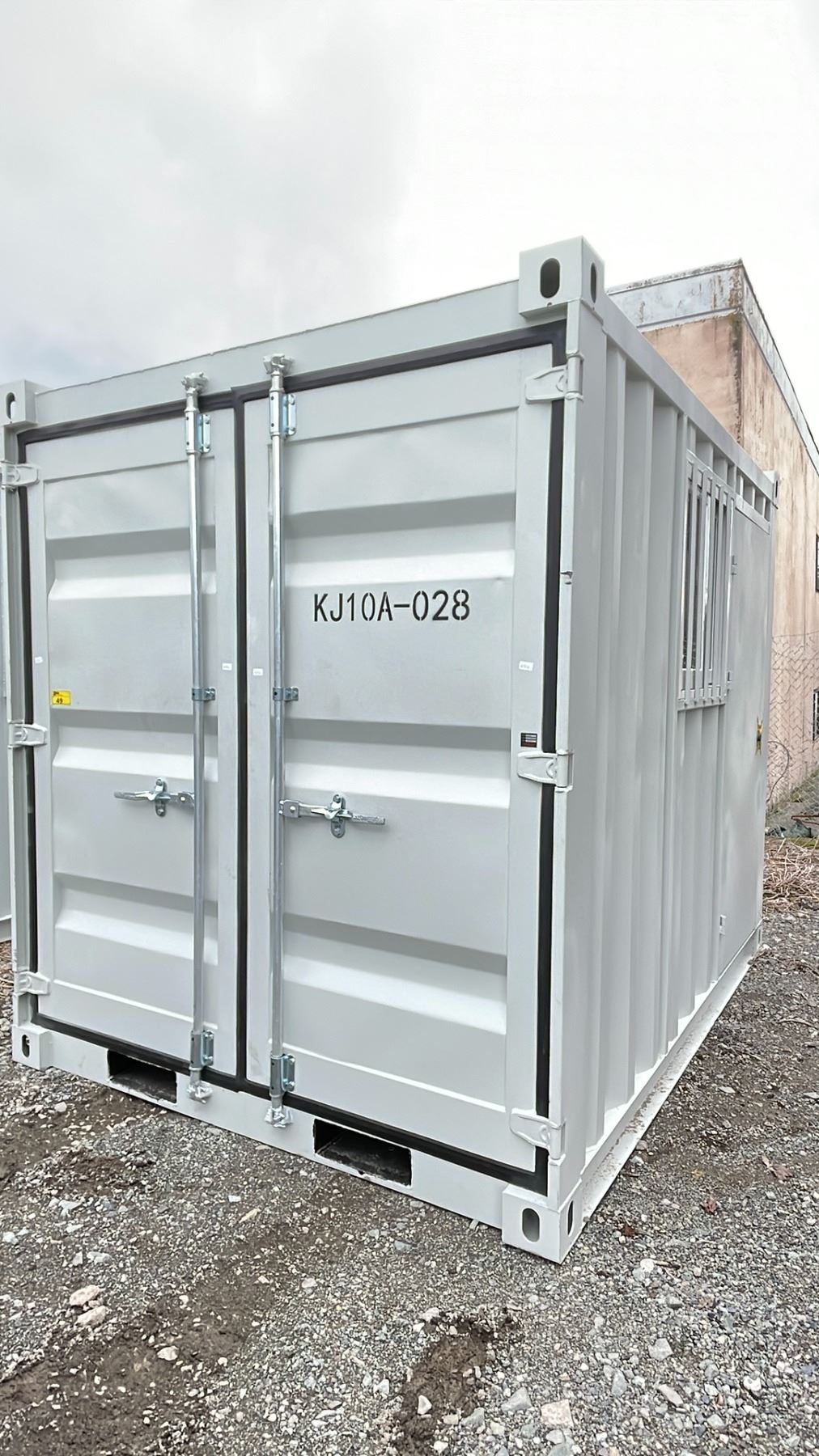 ALLMETAL KJ10A-28 GREY 8' OFFICE STORAGE SHIPPING CONTAINER WITH DUAL SWING REAR DOORS, CAM LOCKS,