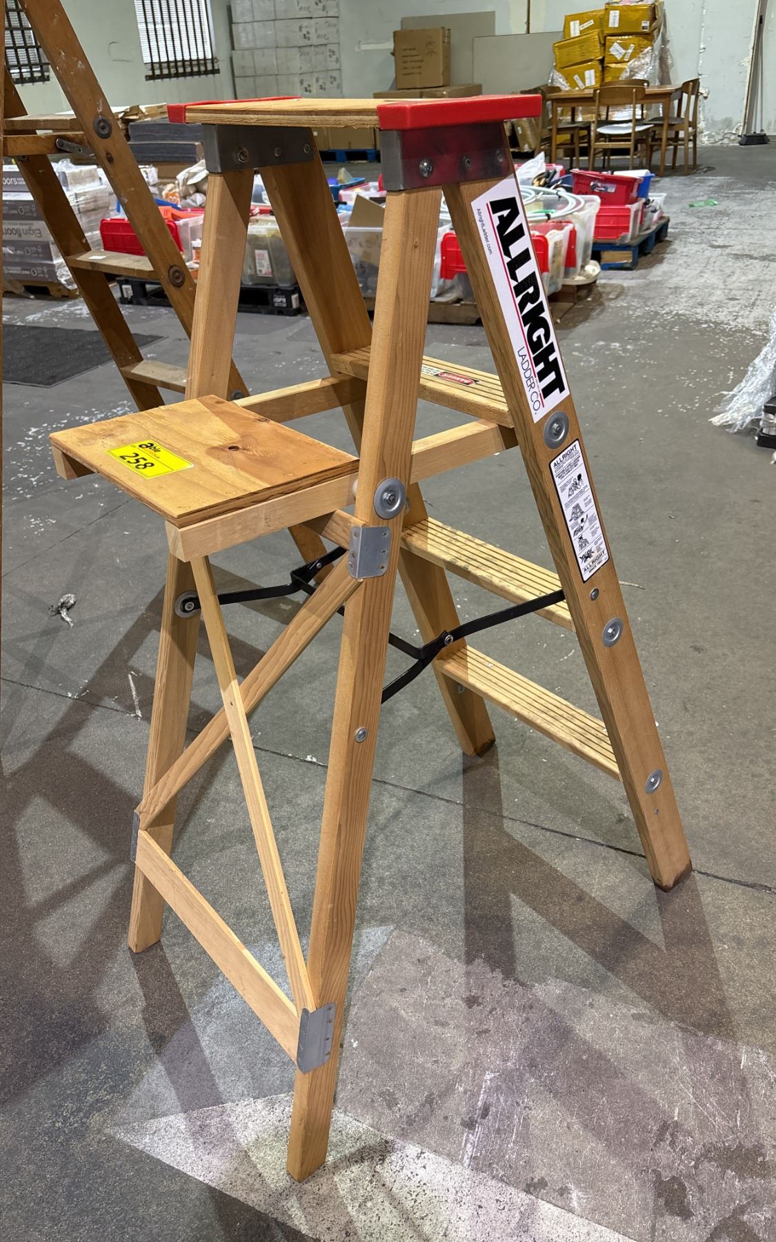 ALLRIGHT 0504-04 WOODEN STEP LADDER WITH A 300 LB CAPACITY