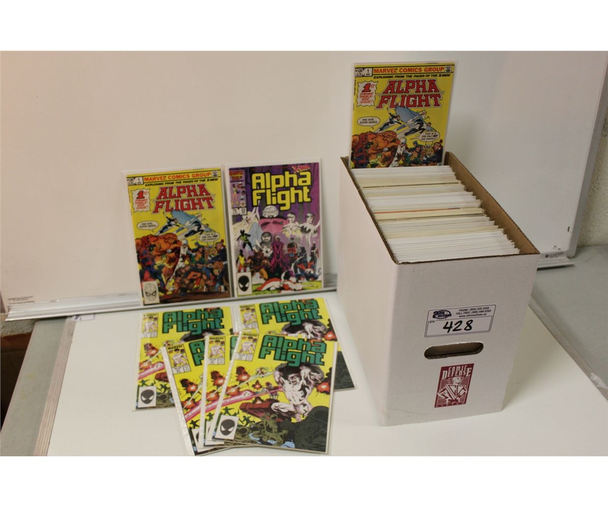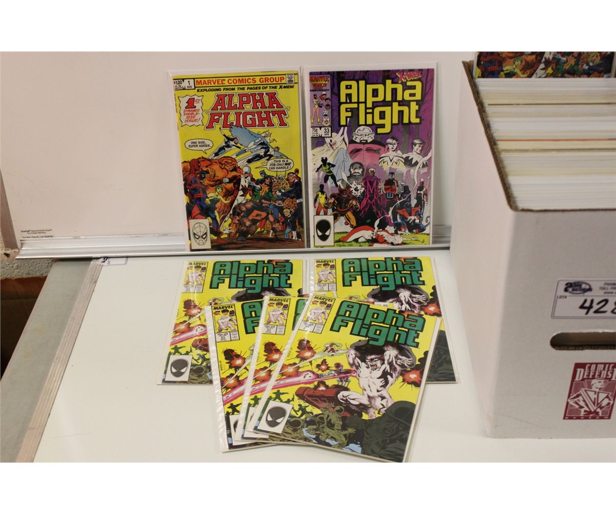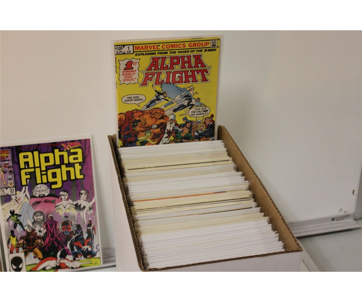 ALPHA FLIGHT RUN & DUPLICATES SHORT BOX. INCLUDES 4 COPIES OF #51 - JIM LEE'S 1ST ART AT MARVEL. HIGH GRADE AVERAGE.
