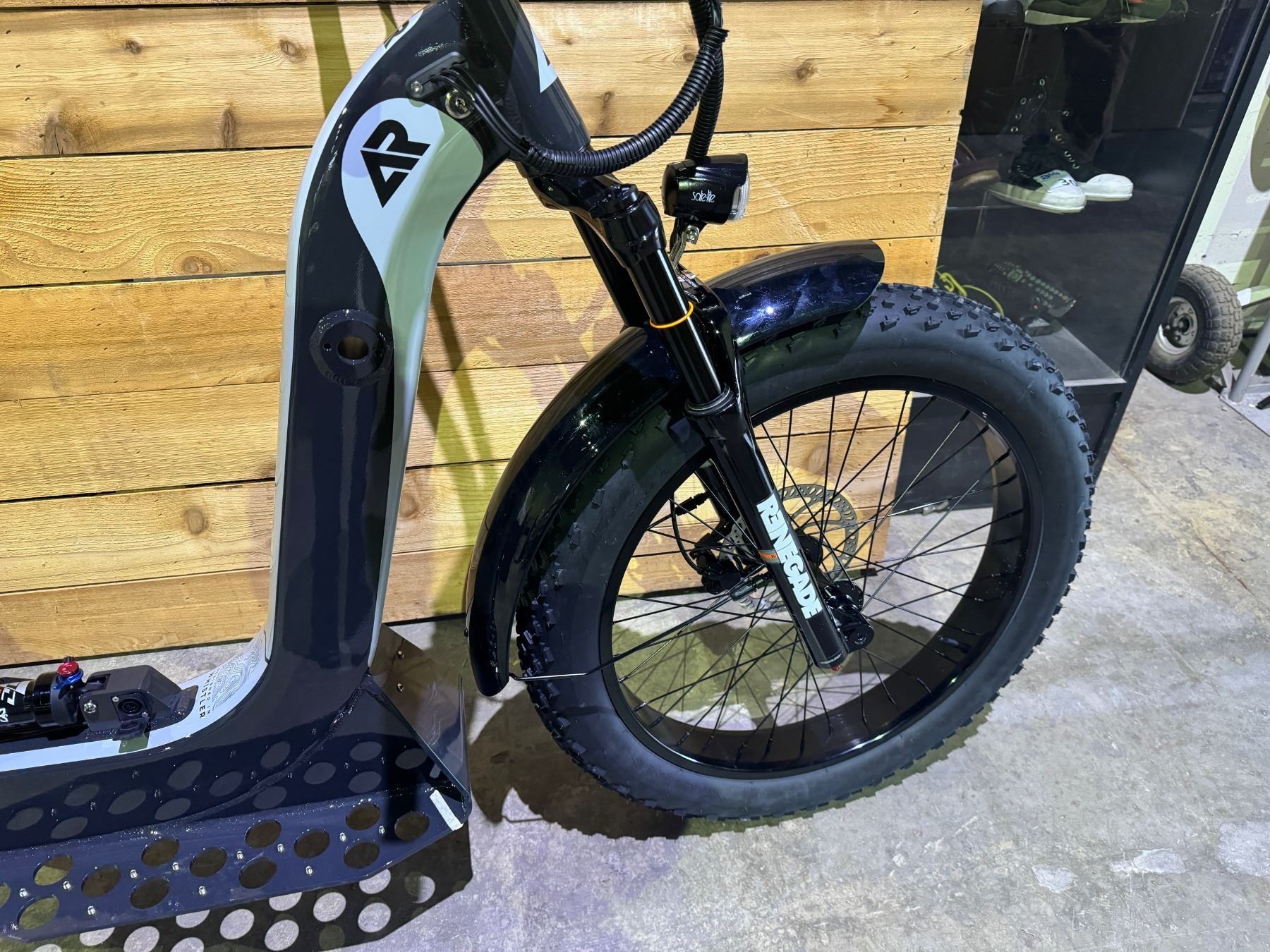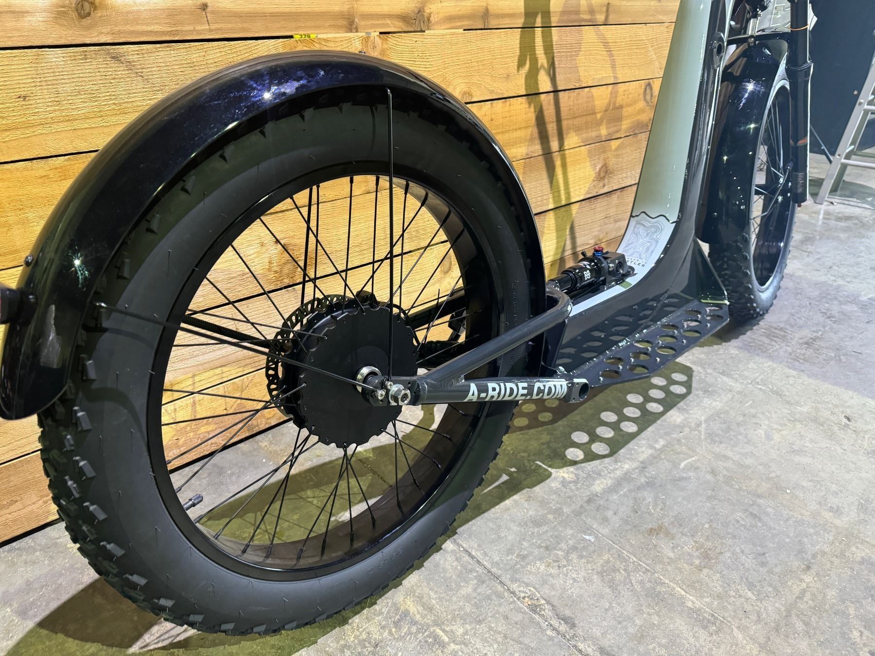 ALPINE RIDING A-RIDE PACIFIC COASTER FULL SUSPENSION ELECTRIC SIZE 24" FAT TIRE SCOOTER, BLACK, 1000W MOTOR, 180 DISC BRAKES, TEKTO HD E-350 CUT OFF, TFT DISPLAY, 35 MPH MAX SPEED, CUSTOM MADE PANASONIC 1356P 1000W BATTERY, 50 MILE RANGE, 3A CHARGER INCLUDED *DISPLAY ONLY*
