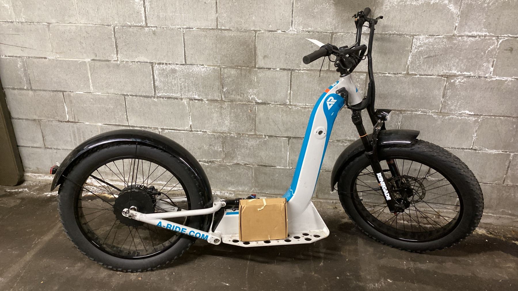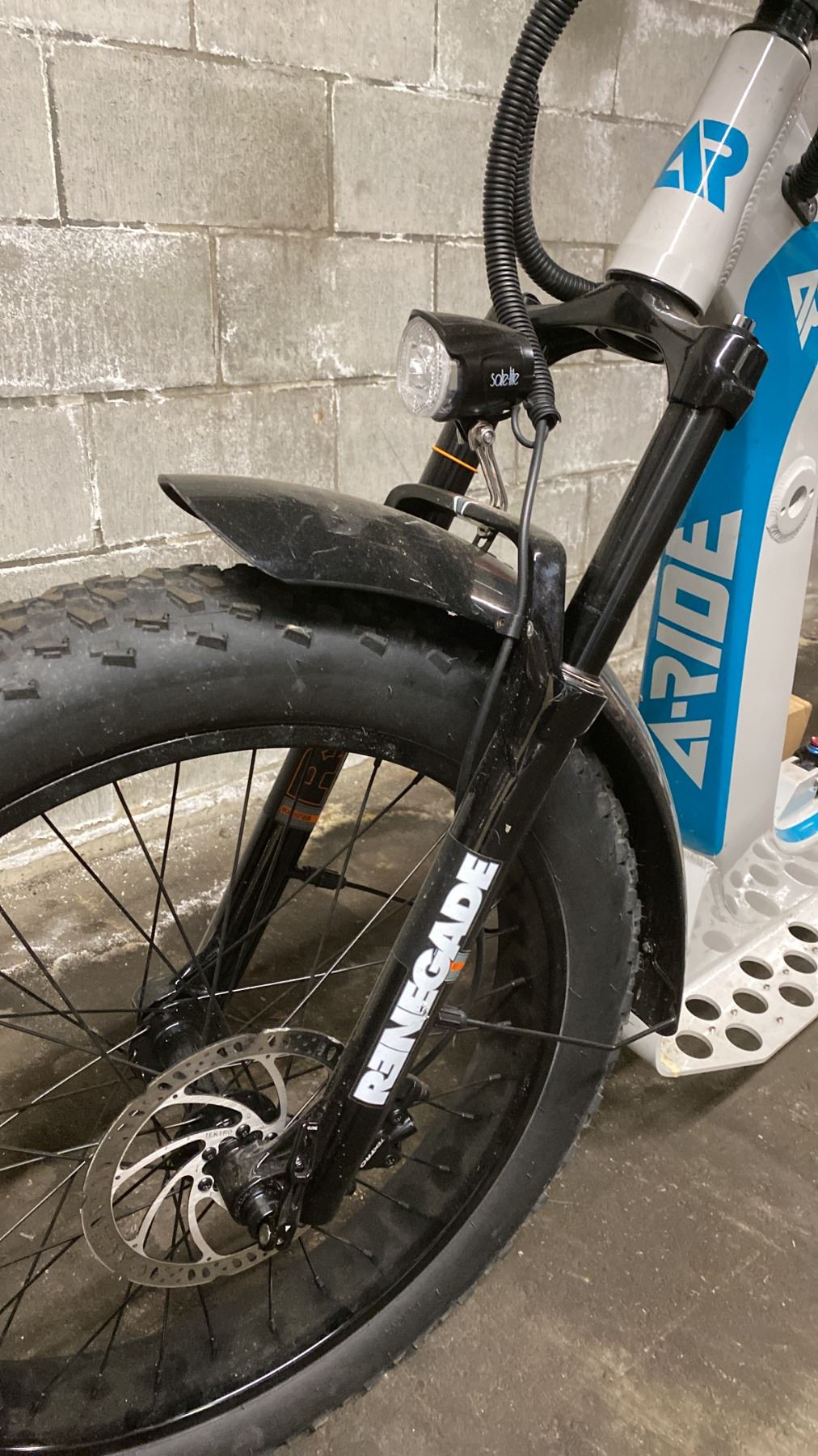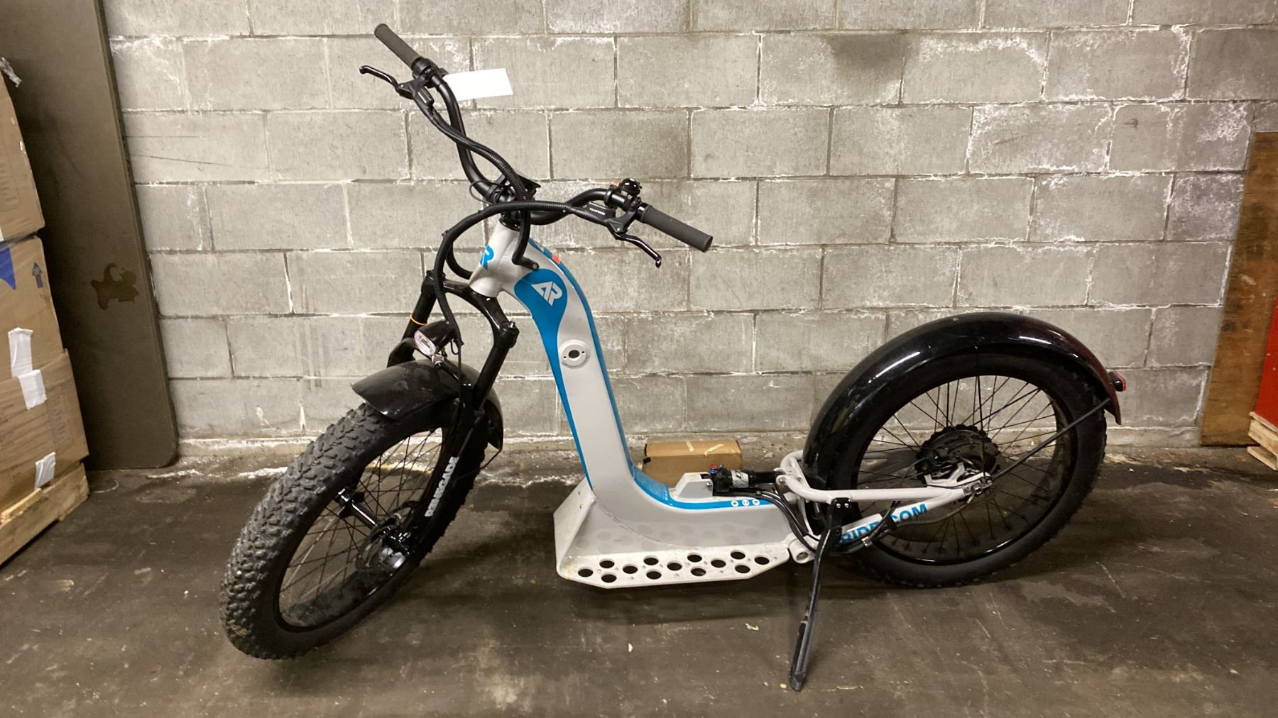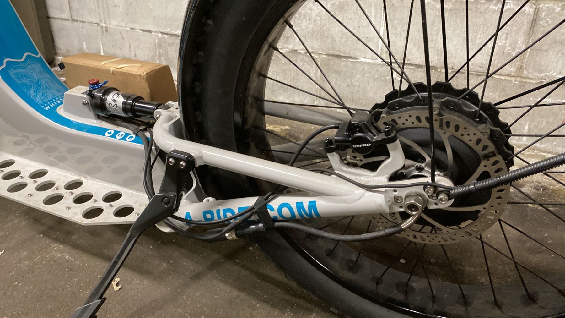 ALPINE RIDING A-RIDE PACIFIC COASTER FULL SUSPENSION ELECTRIC SIZE 24" FAT TIRE SCOOTER, WHITE, 1000W MOTOR, 180 DISC BRAKES, TEKTO HD E-350 CUT OFF, TFT DISPLAY, 35 MPH MAX SPEED, CUSTOM PANASONIC 1356P 1000W BATTERY, 50 MILE RANGE, 3A CHARGER INCLUDED *HAS KEYS* *IN BOX*