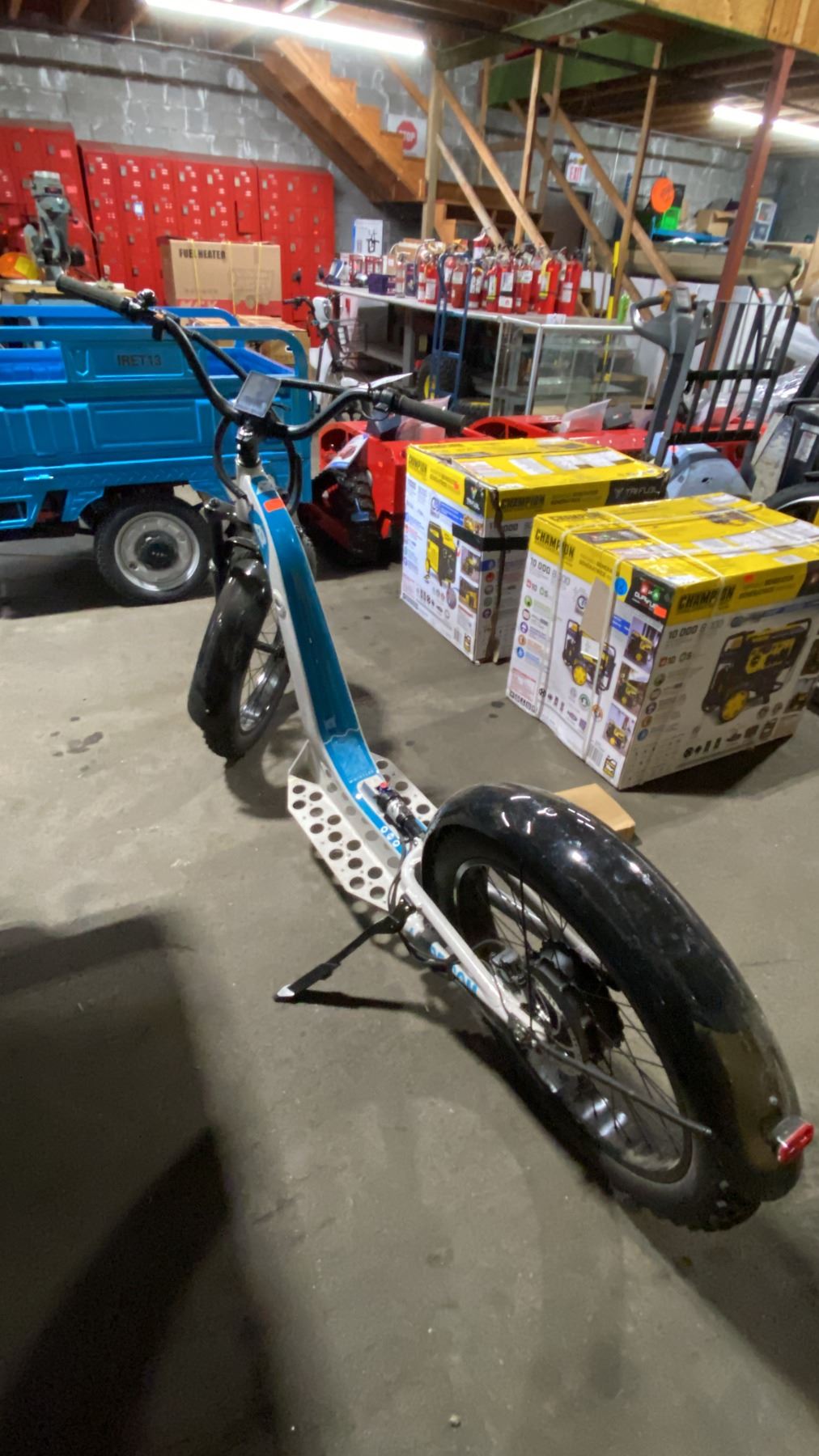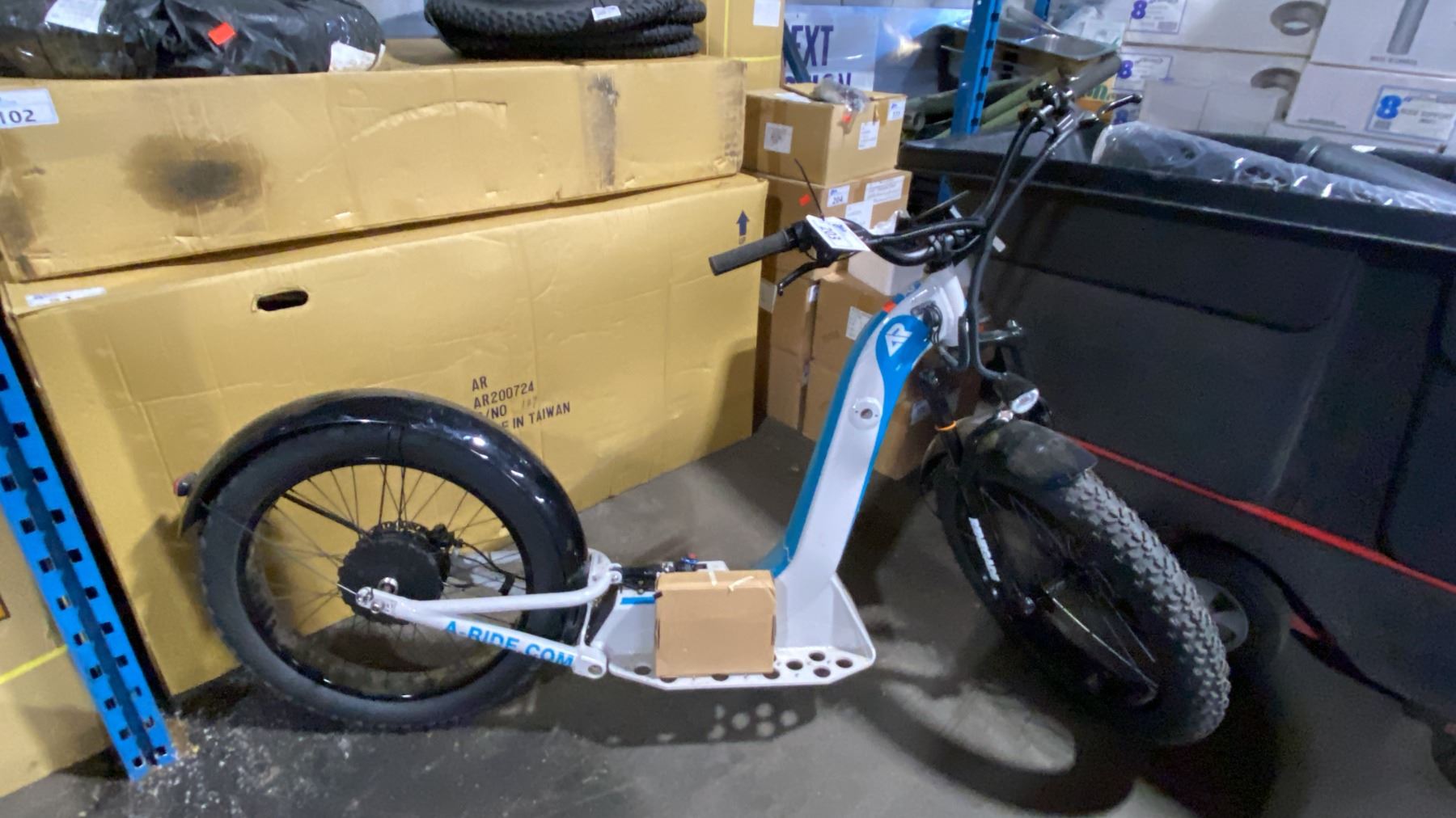 ALPINE RIDING A-RIDE PACIFIC COASTER FULL SUSPENSION ELECTRIC SIZE 24" FAT TIRE SCOOTER, WHITE, 1000W MOTOR, 180 DISC BRAKES, TEKTO HD E-350 CUT OFF, TFT DISPLAY, 35 MPH MAX SPEED, CUSTOM PANASONIC 1356P 1000W BATTERY, 50 MILE RANGE, 3A CHARGER INCLUDED *HAS KEYS* *DISPLAY, NOT IN BOX*