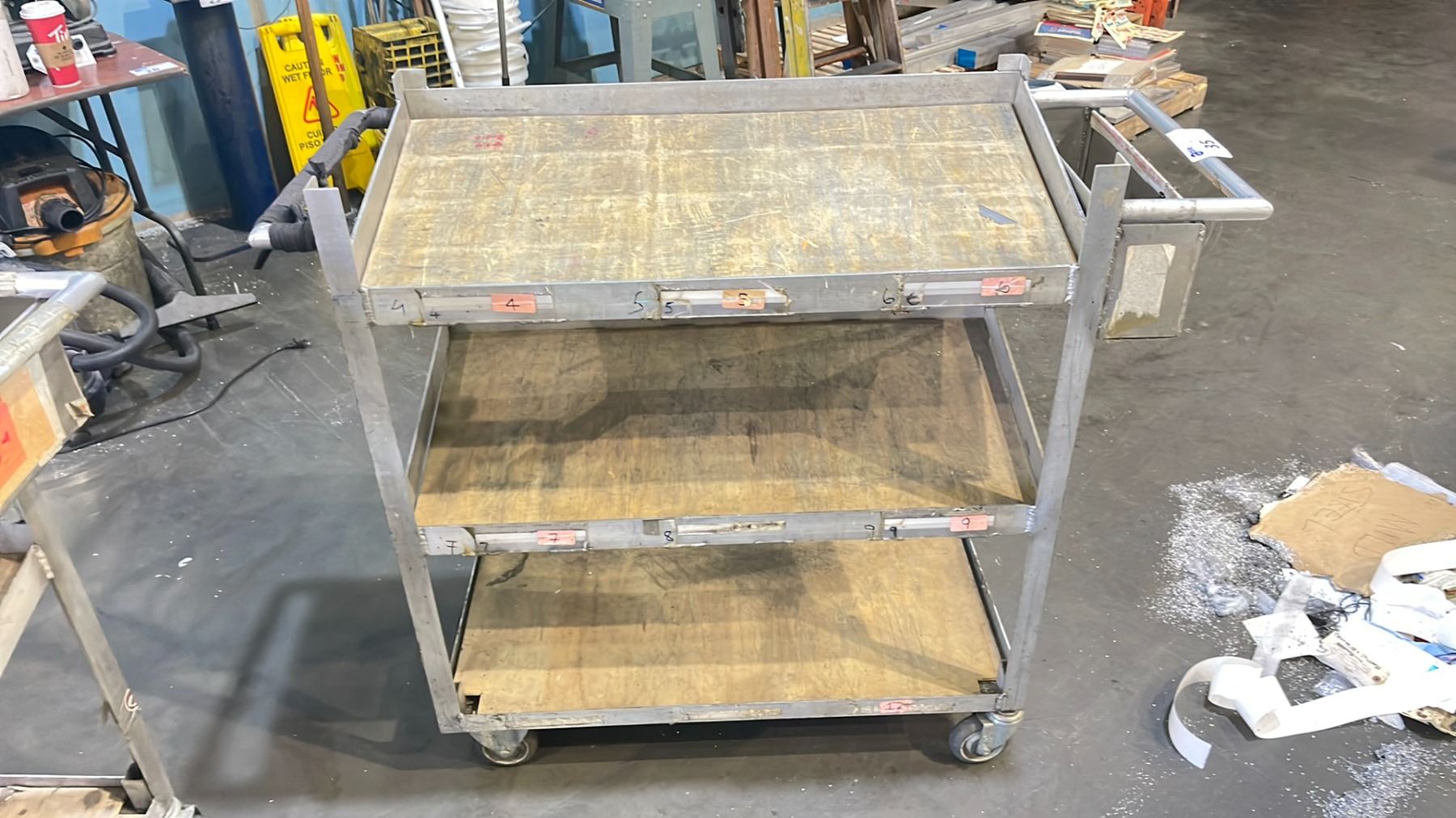 ALUMINUM 47"W X 18"D X 41 1/2"H INDUSTRIAL 3 TIER MOBILE PRODUCT CART