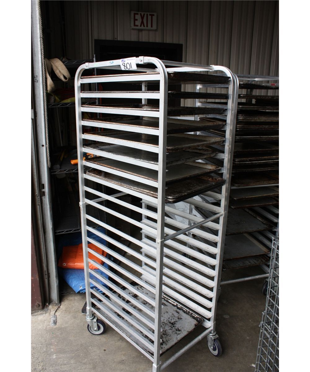 ALUMINUM MOBILE BAKERS RACK WITH ASSORTED PANS