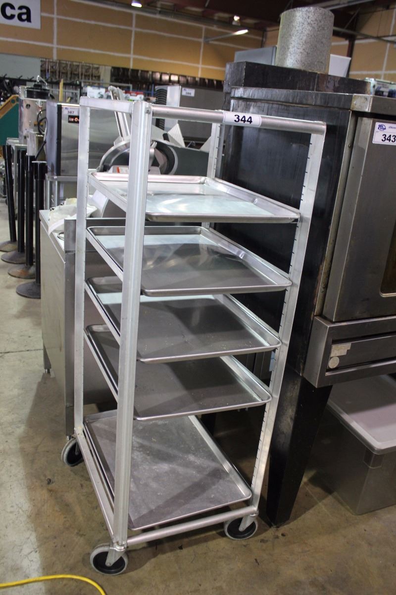 ALUMINUM MOBILE BAKERS RACK WITH BAKING SHEETS