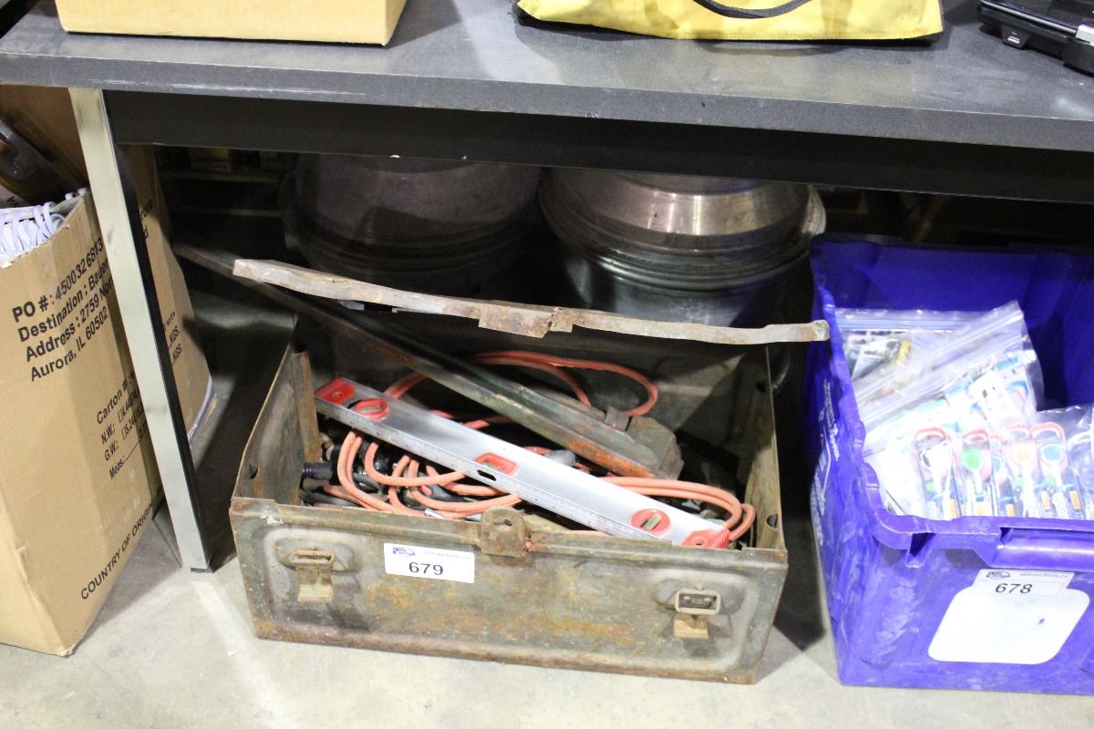 ALUMINUM RIMS & BIN OF ASSORTED TOOLS