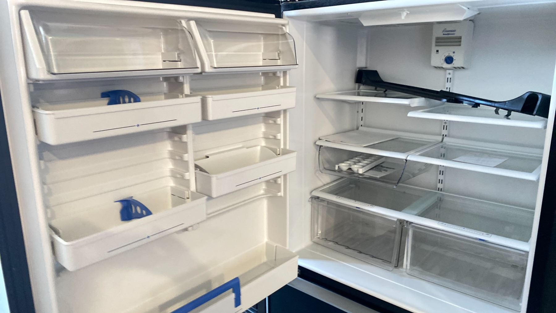AMANA BRF20TE BLACK/STAINLESS STEEL REFRIGERATOR WITH BOTTOM FREEZER APPROX 36"W X 68"H X 26.75"D 20 CU FT, PANEL READY