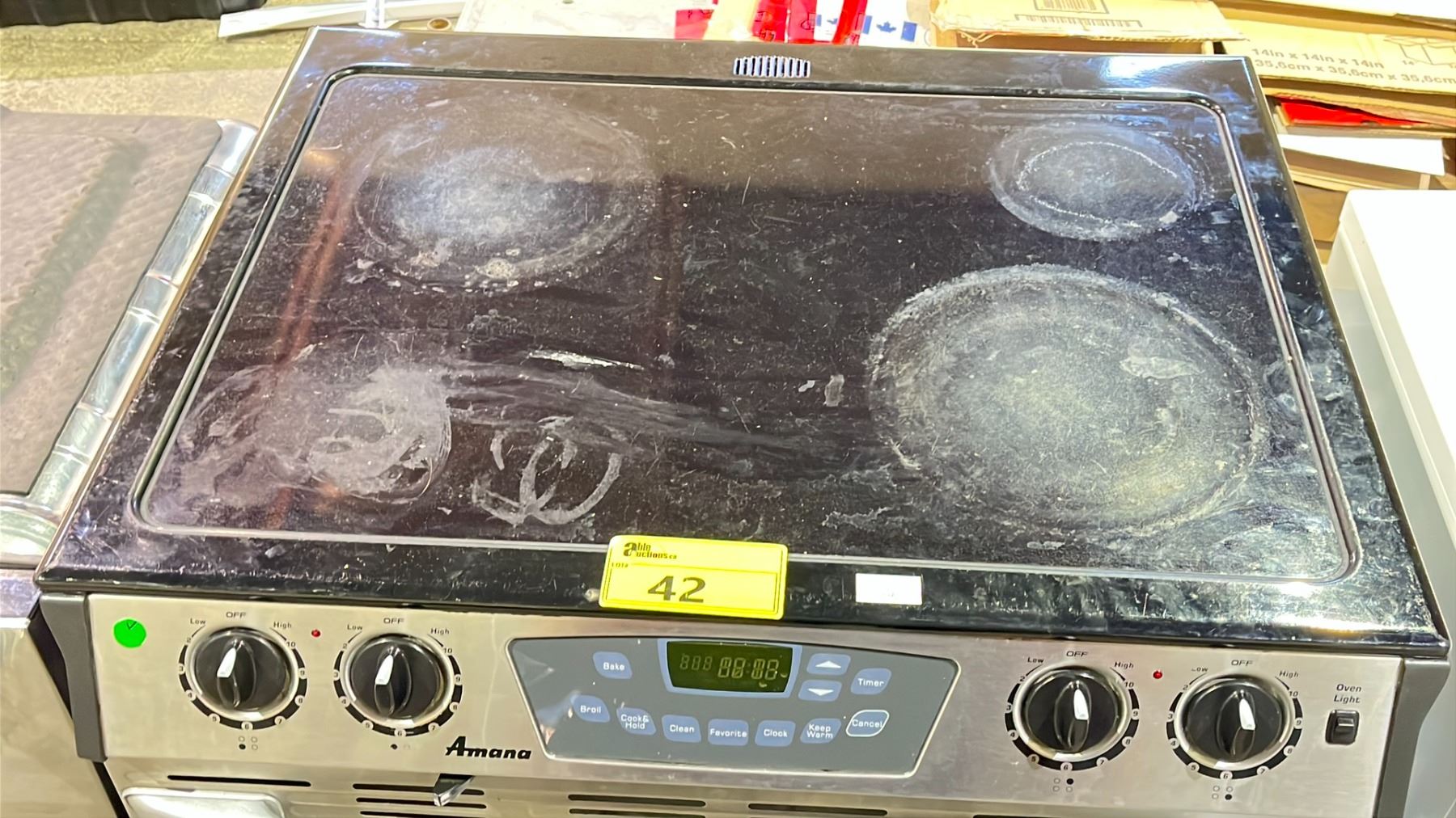 AMANA STAINLESS STEEL ELECTRIC STOVE WITH CONVECTION OVEN