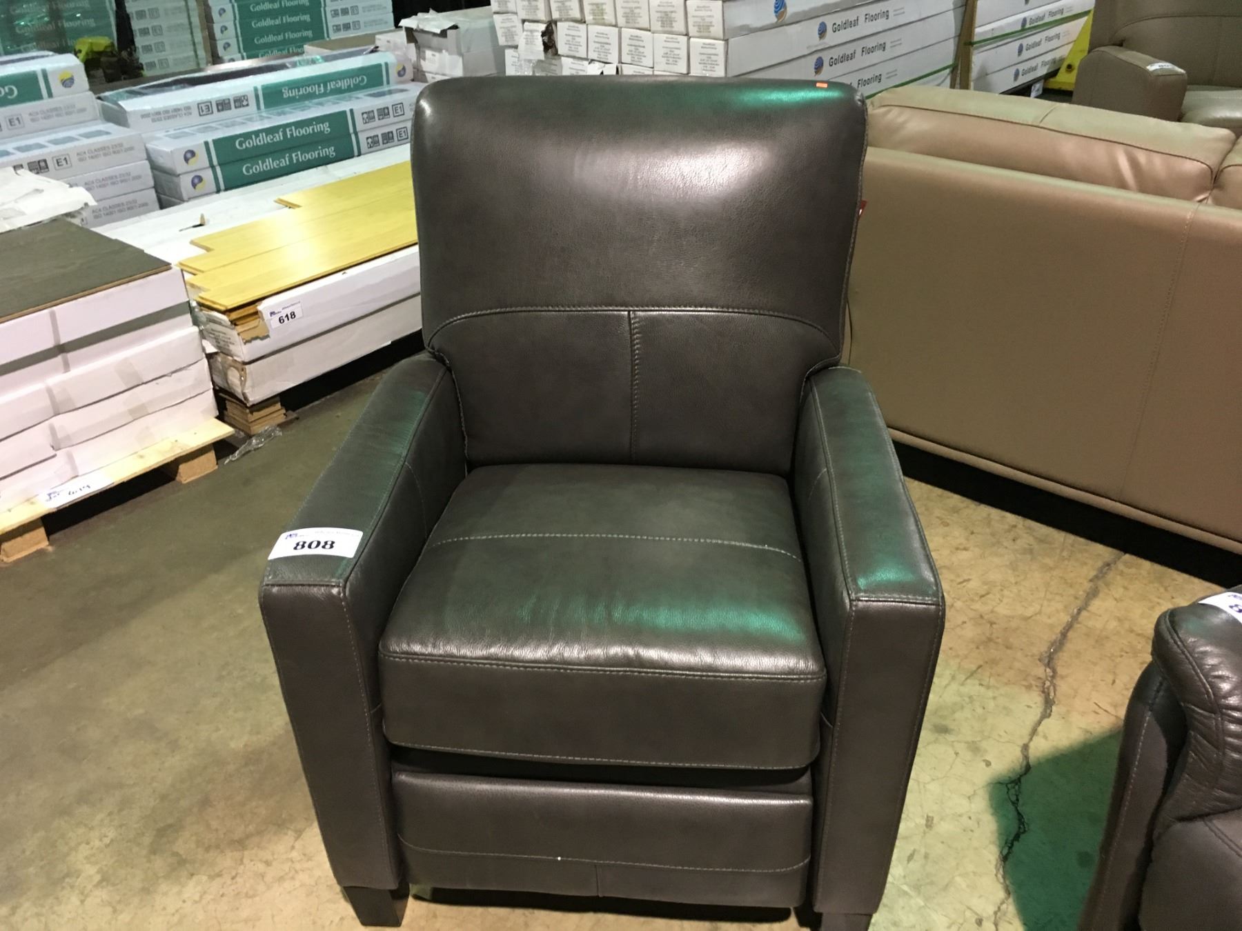 AMAX MODEL GREY LEATHER MANUAL RECLINING ARM CHAIR
