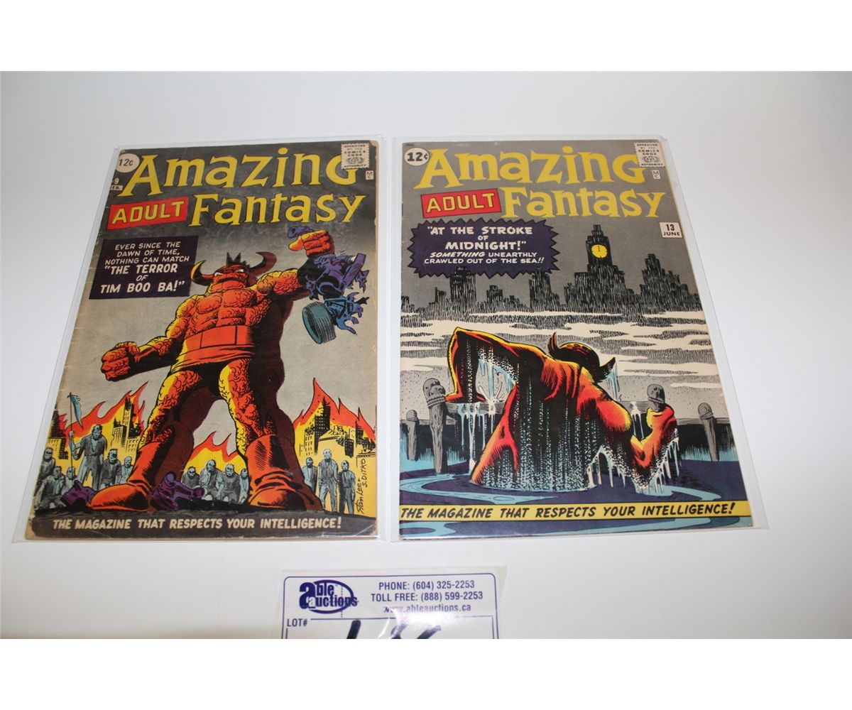 AMAZING ADULT FANTASY #9 &13 (1962) 2 CLASSIC LEE & DITKO MARVEL PRE-HERO ISSUES. #13 IS A VERY SHARP, TIGHT, GLOSSY WHITE & SUPPLE HIGHER MID GRADE (RARE IN GRADE) #9 IS A LOWER MID GRADE, VERY SOLID BEAUTIFUL BOOKS!