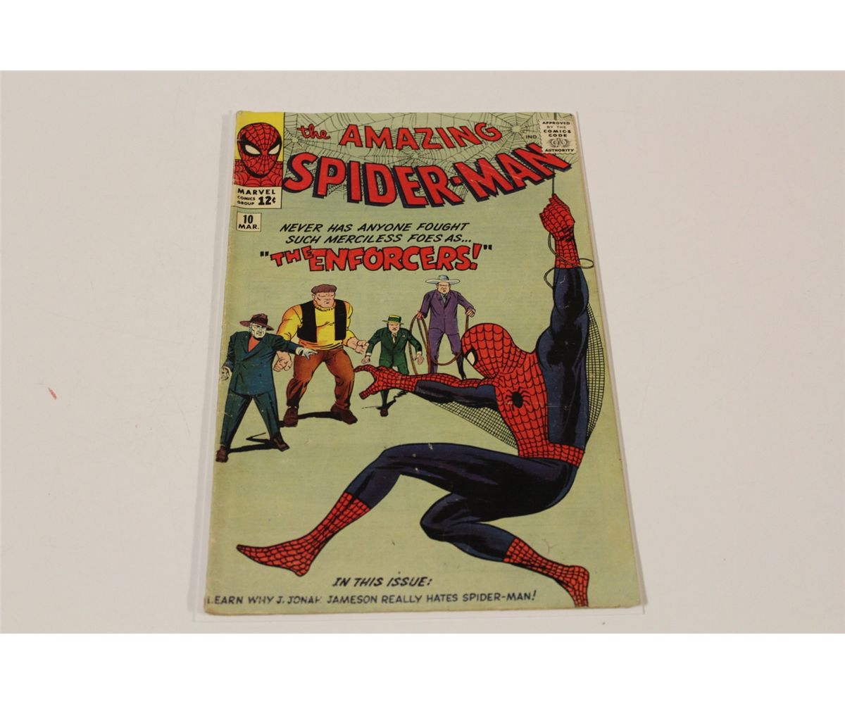 AMAZING SPIDER-MAN #10 (1964) 1ST APP. THE ENFORCERS. LOW TO LOWER MID GRADE. COVER & CF ATTACHED, GLOSSY, TIGHT & SUPPLE, NICE COPY.