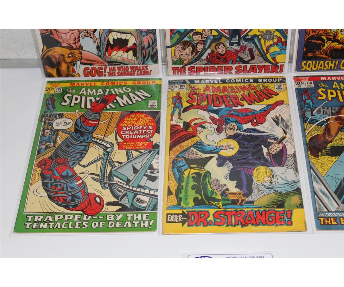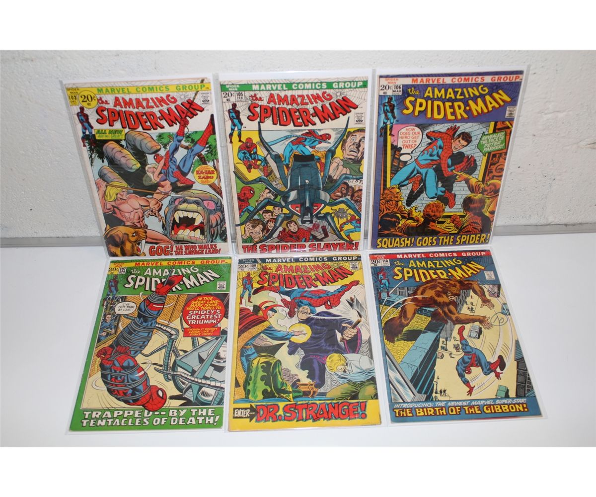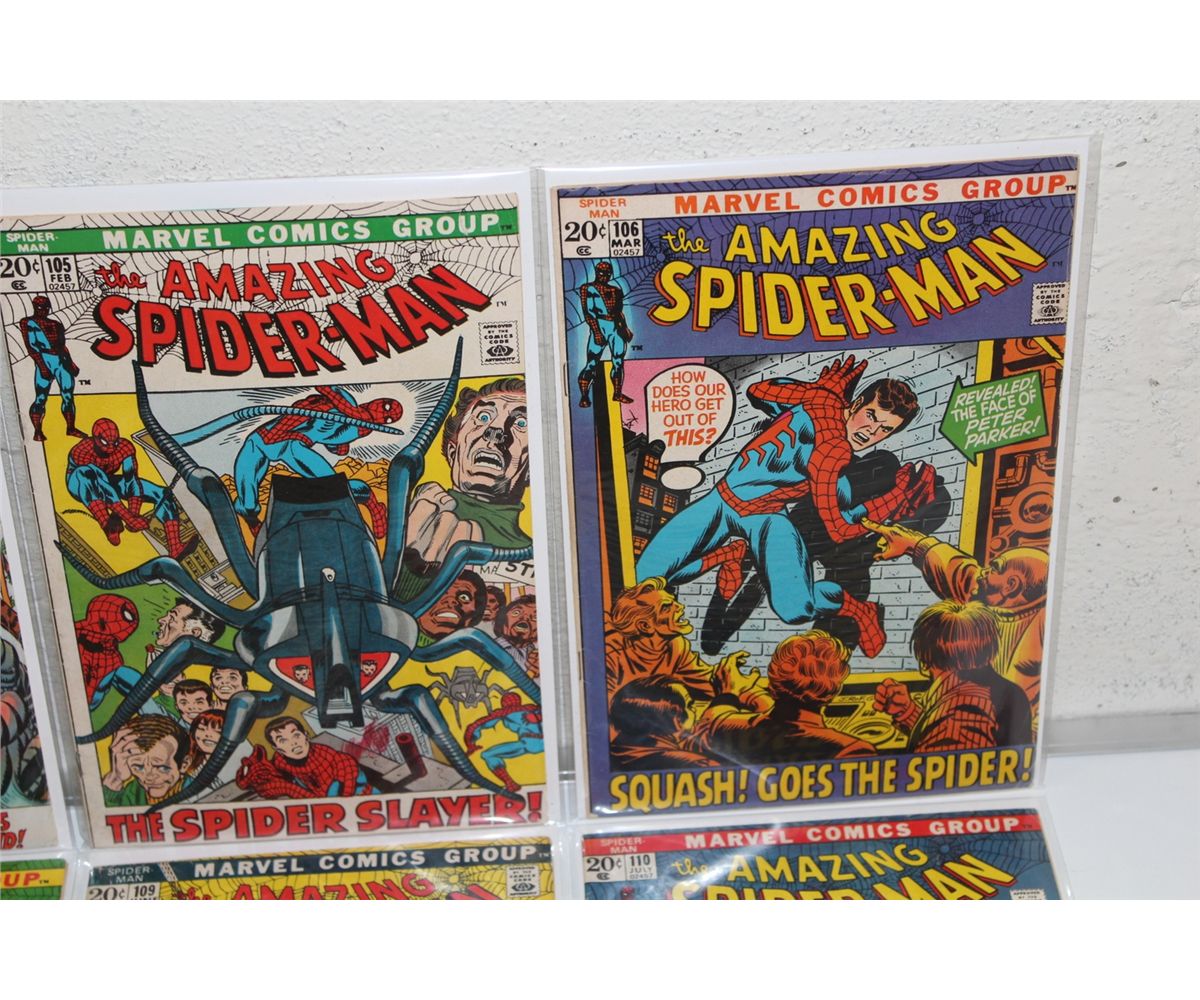 AMAZING SPIDER-MAN # 103, 105-107 & 109-110 (1971-72) SOLID MID GRADE AVERAGE, NICE COPIES. 6 BOOKS TOTAL.