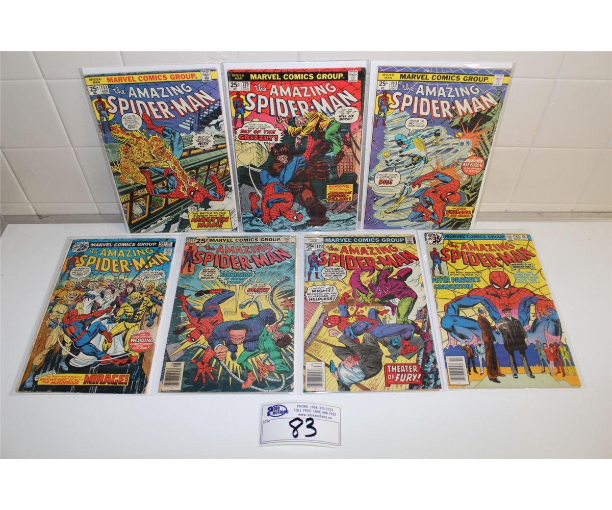AMAZING SPIDER-MAN #133, #139, #143, #156, #159, #179, #185 IN MID GRADE AVERAGE
