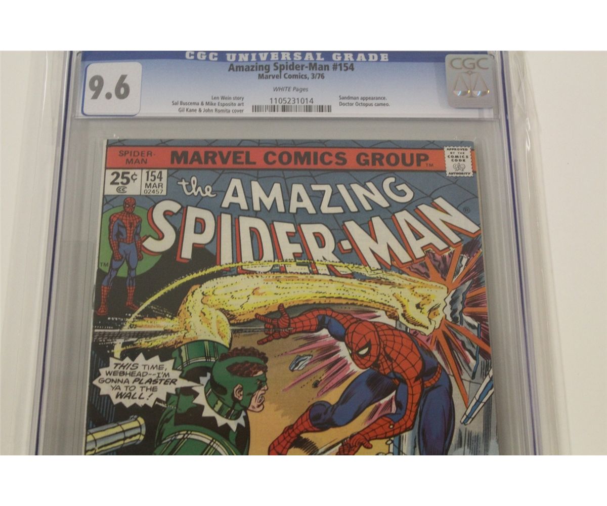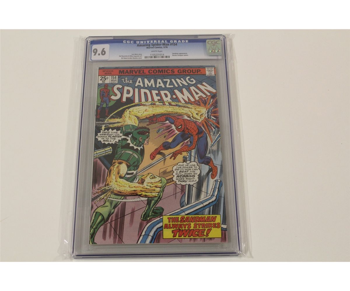 AMAZING SPIDER-MAN #154 CGC 9.6 (NM+) (1976) WHITE PAGES, VS.SANDMAN. A CGC 9.6 COPY SOLD FOR $218 218 IN MAY 2004 AS TRACKED THROUGH THE GPA