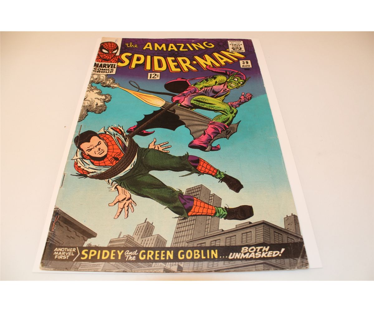 AMAZING SPIDER-MAN #39 (1966) KEY ISSUE - 1ST ROMITA ART, GREEN GOBLIN'S I.D. REVEALED, CLASSIC ROMITA COVER. MID GRADE COPY, HAS 3 EXTRA STAPLES ADDED, FLAT, TIGHT AND SUPPLE.