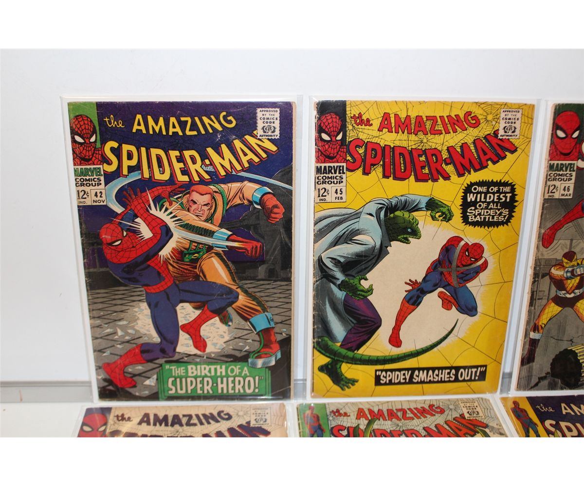 AMAZING SPIDER-MAN #42 & 45-49 CONSECUTIVE (1966-67) 6 ISSUE SILVER AGE RUN, #42 1ST APP. MARY JANE. LOW TO LOWER MID GRADE AVG, #47 IS A SHARP MID TO HIGH MID GRADE