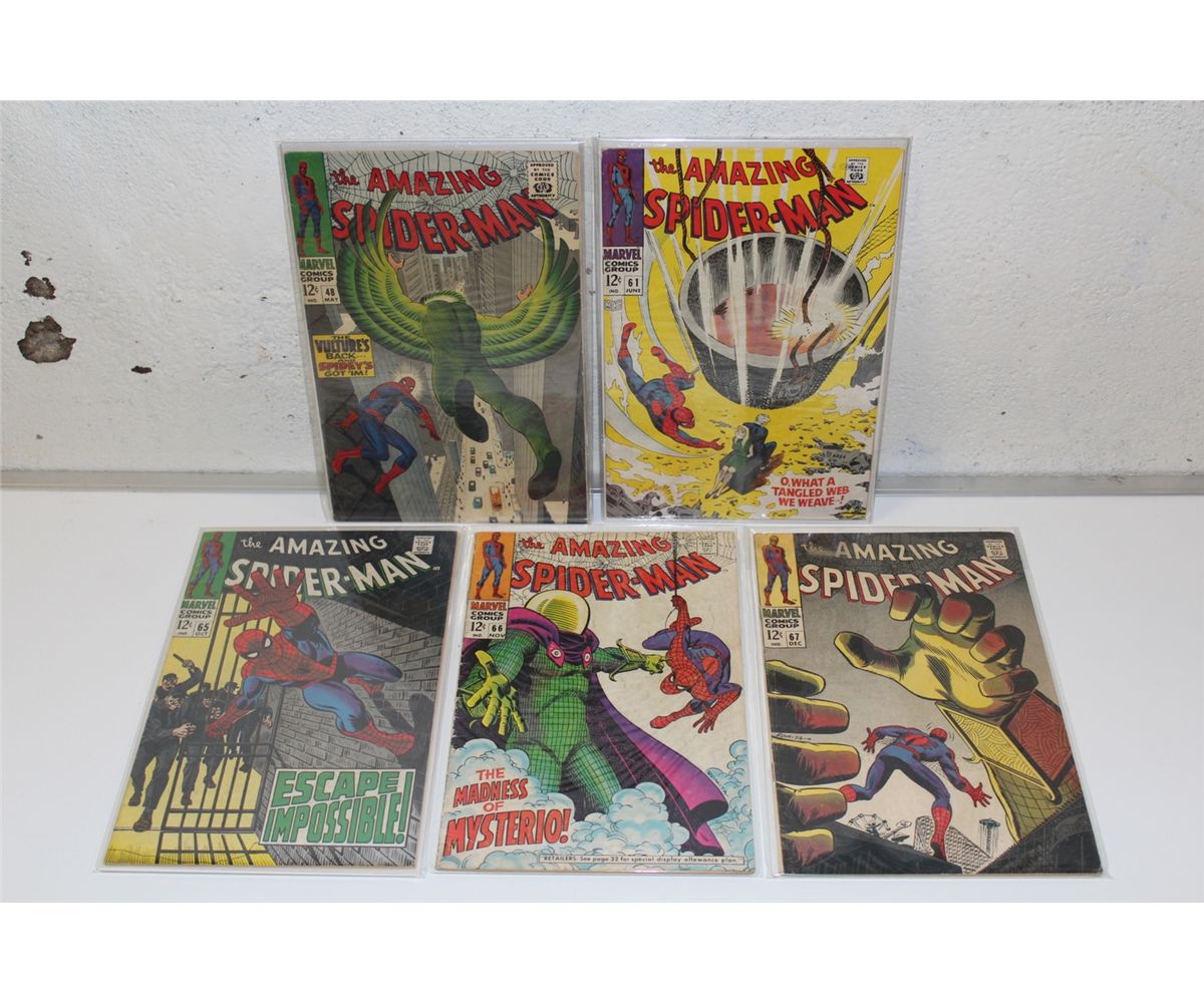 AMAZING SPIDER-MAN #48, 61, 65, 66 & 67 (1967-68) SILVER AGE RUN OF 5 DIFFERENT ISSUES. LOW TO MID GRADE AVERAGE, SOLID COPIES.