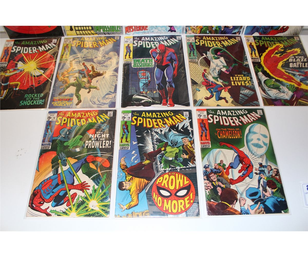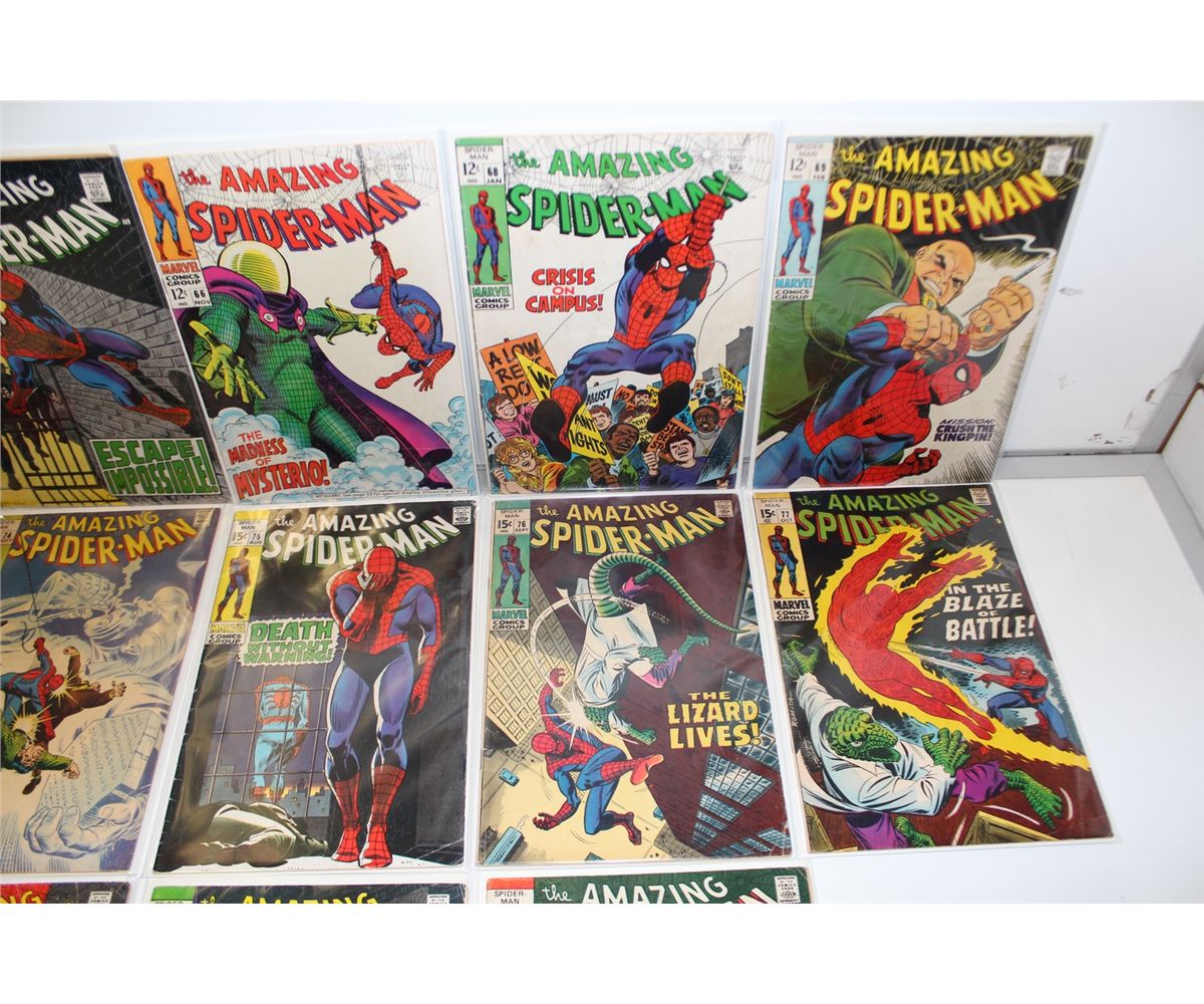 AMAZING SPIDER-MAN #63, 65-66, 68-69, 72 & 74-80 (1968-69) 13 SILVER AGE ISSUES. LOWER MID GRADE AVG, FLAT & SUPPLE, A SOLID RUN!