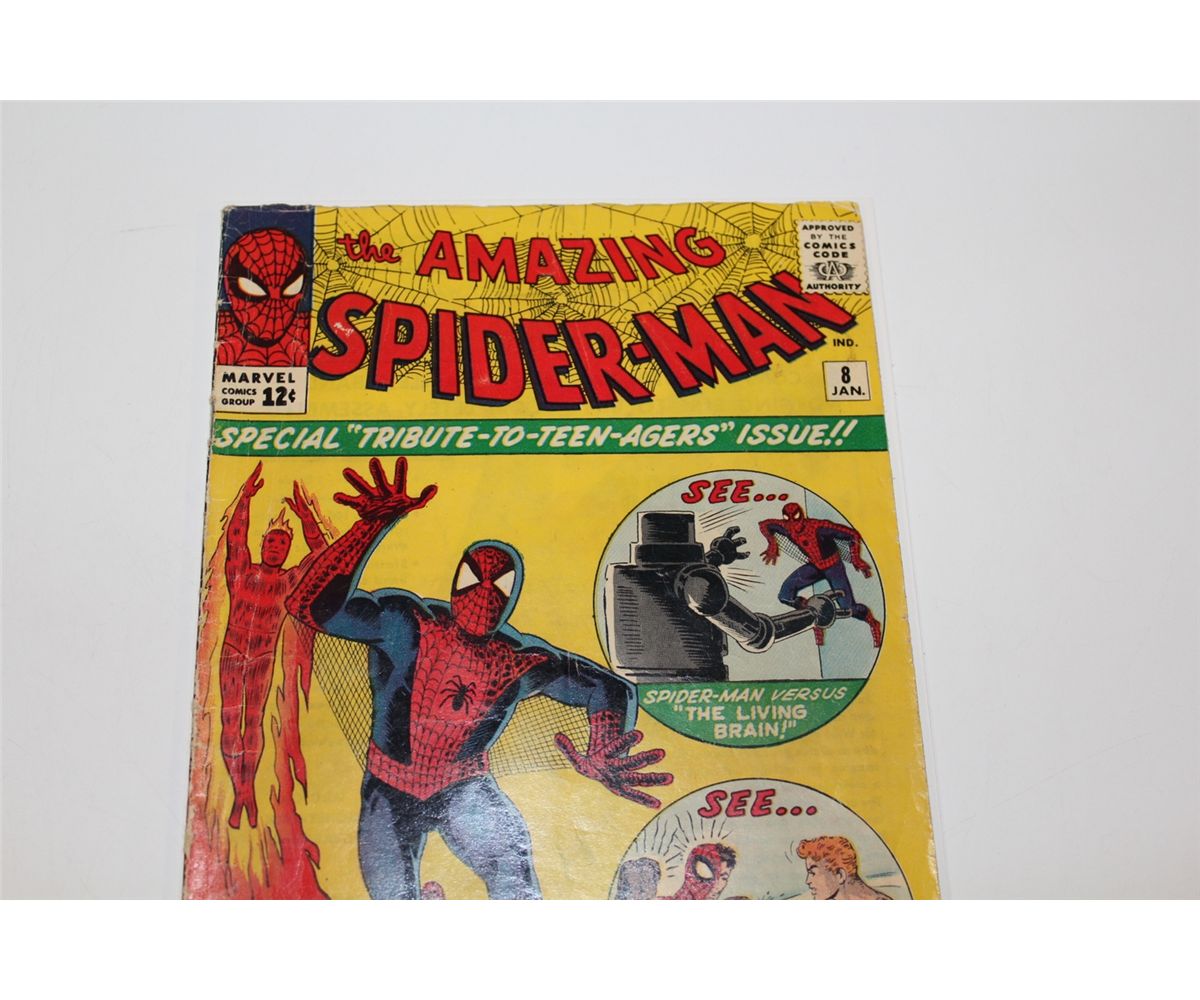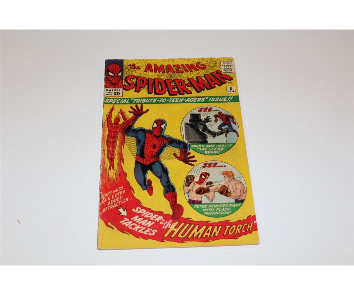 AMAZING SPIDER-MAN #8 (1964) FANTASTIC FOUR APP. BY KIRBY & DITKO. LOWER MID GRADE, COVER & CF ATTACHED, GLOSSY, TIGHT & SUPPLE, NICE COPY.