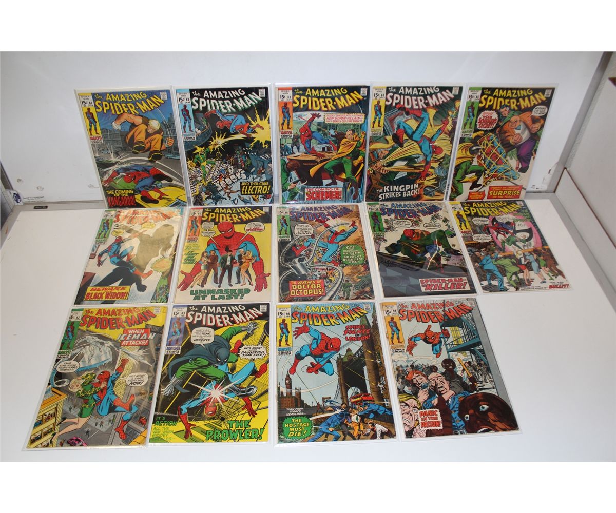 AMAZING SPIDER-MAN #81-88, 90-93, 95 & 99 (1970-71) 14 ISSUE EARLY BRONZE RUN #90- DEATH OF CAPTAINS STEACY. LOWER MID TO MID GRADE AVG.