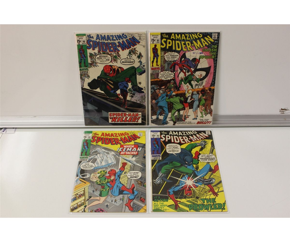 AMAZING SPIDER-MAN #90, 91, 92, 93 (1970-71) SOLID MID GRADE AVERAGE. NICE, SHARP & SUPPLE LOT.